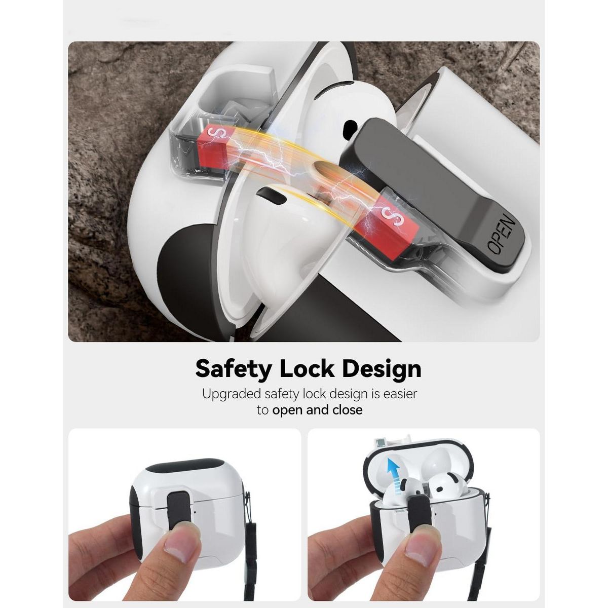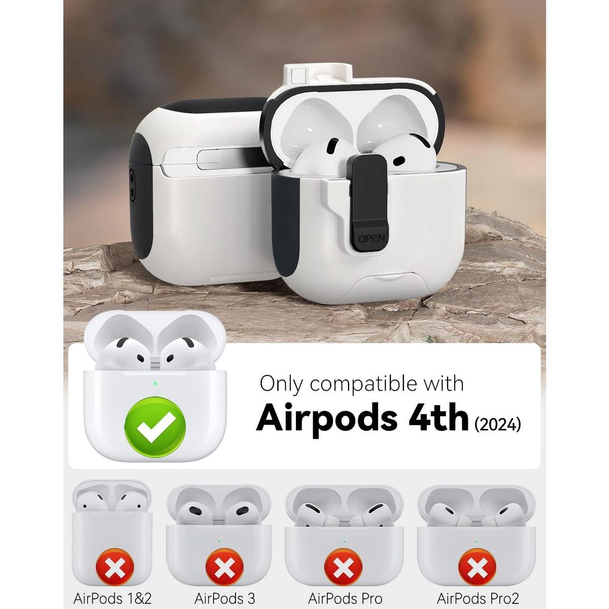 This White AirPods 4 Case redefines practicality for AirPods users, combining robust protection with multi-functional design—featuring an automatic magnetic lock, built-in phone holder, shockproof hard shell, and included cleaner kit. Tailored exclusively to fit AirPods 4, the case boasts a sleek white finish that complements any style, while its high-impact hard shell (crafted from durable PC material) shields the AirPods 4 charging case from accidental drops, bumps, and scratches. Unlike soft silicone cases that offer limited impact resistance, this hard cover maintains its structural integrity even with daily use, keeping your AirPods 4 safe from purse clutter, travel jostles, or everyday wear.