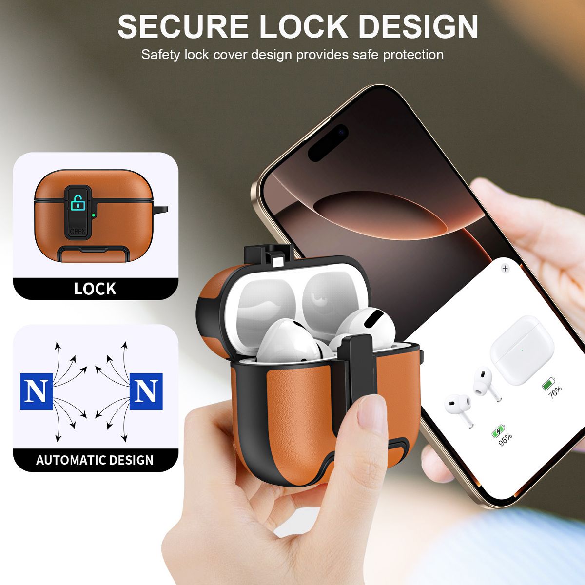This Leather Case for AirPods 4 redefines headphone protection with a blend of premium texture, all-around defense, and smart multi-functional features—making it a sleek, practical accessory for both men and women. Crafted from high-quality leather, it serves as an all-round protective cover that shields your AirPods 4 from scratches, drops, and daily wear, while integrated extras like a hidden bracket, magnetic lock, and included cleaning kit elevate its usability beyond basic cases.