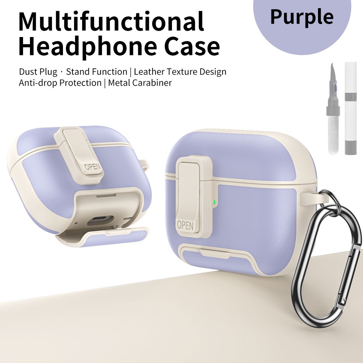 This Leather Case for AirPods 4 redefines headphone protection with a blend of premium texture, all-around defense, and smart multi-functional features—making it a sleek, practical accessory for both men and women. Crafted from high-quality leather, it serves as an all-round protective cover that shields your AirPods 4 from scratches, drops, and daily wear, while integrated extras like a hidden bracket, magnetic lock, and included cleaning kit elevate its usability beyond basic cases.