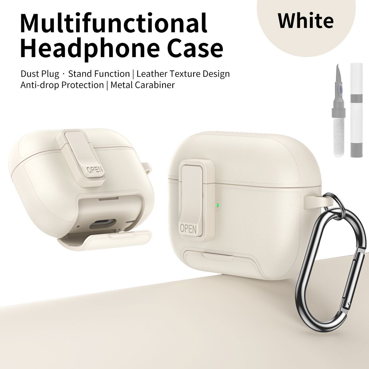 This Leather Case for AirPods 4 redefines headphone protection with a blend of premium texture, all-around defense, and smart multi-functional features—making it a sleek, practical accessory for both men and women. Crafted from high-quality leather, it serves as an all-round protective cover that shields your AirPods 4 from scratches, drops, and daily wear, while integrated extras like a hidden bracket, magnetic lock, and included cleaning kit elevate its usability beyond basic cases.