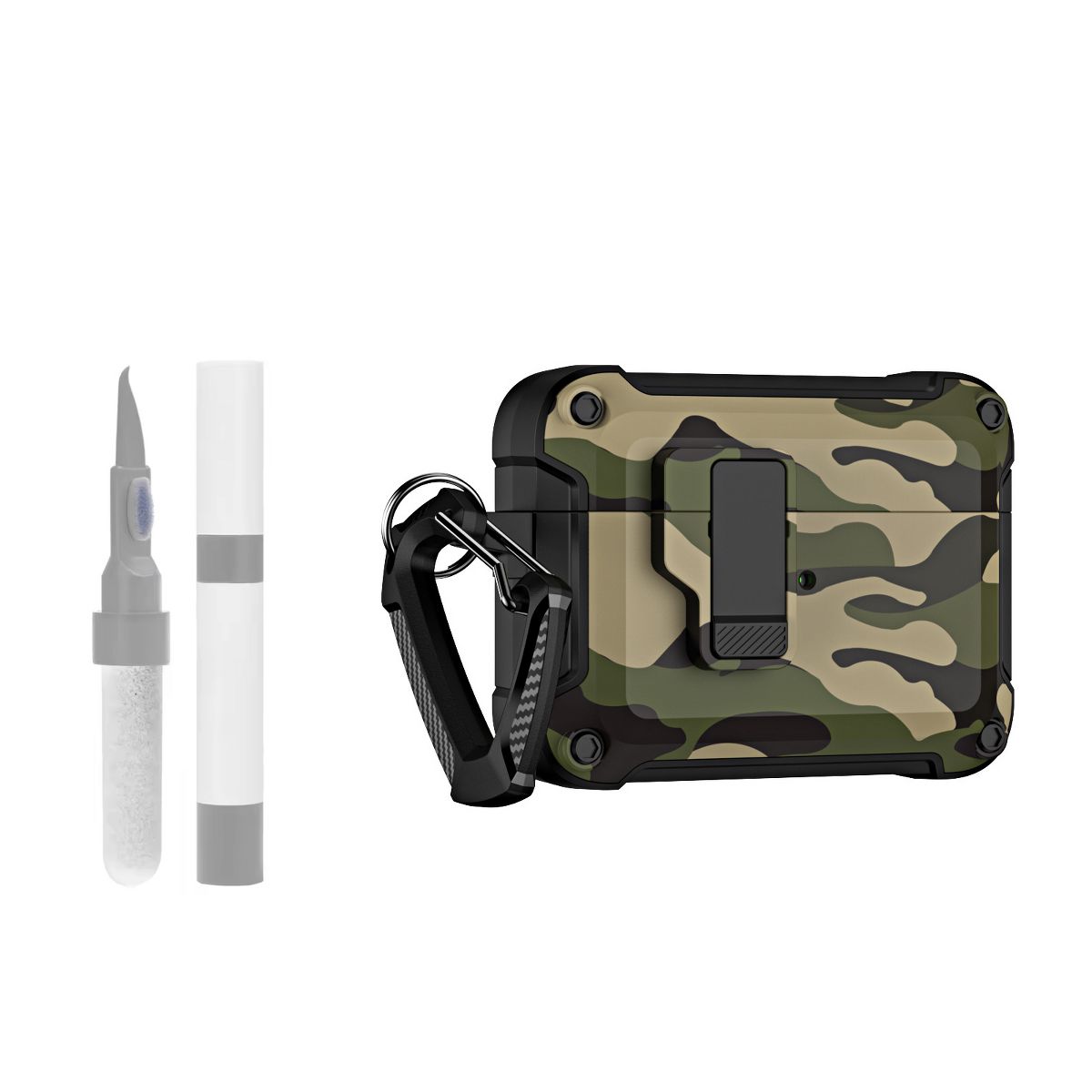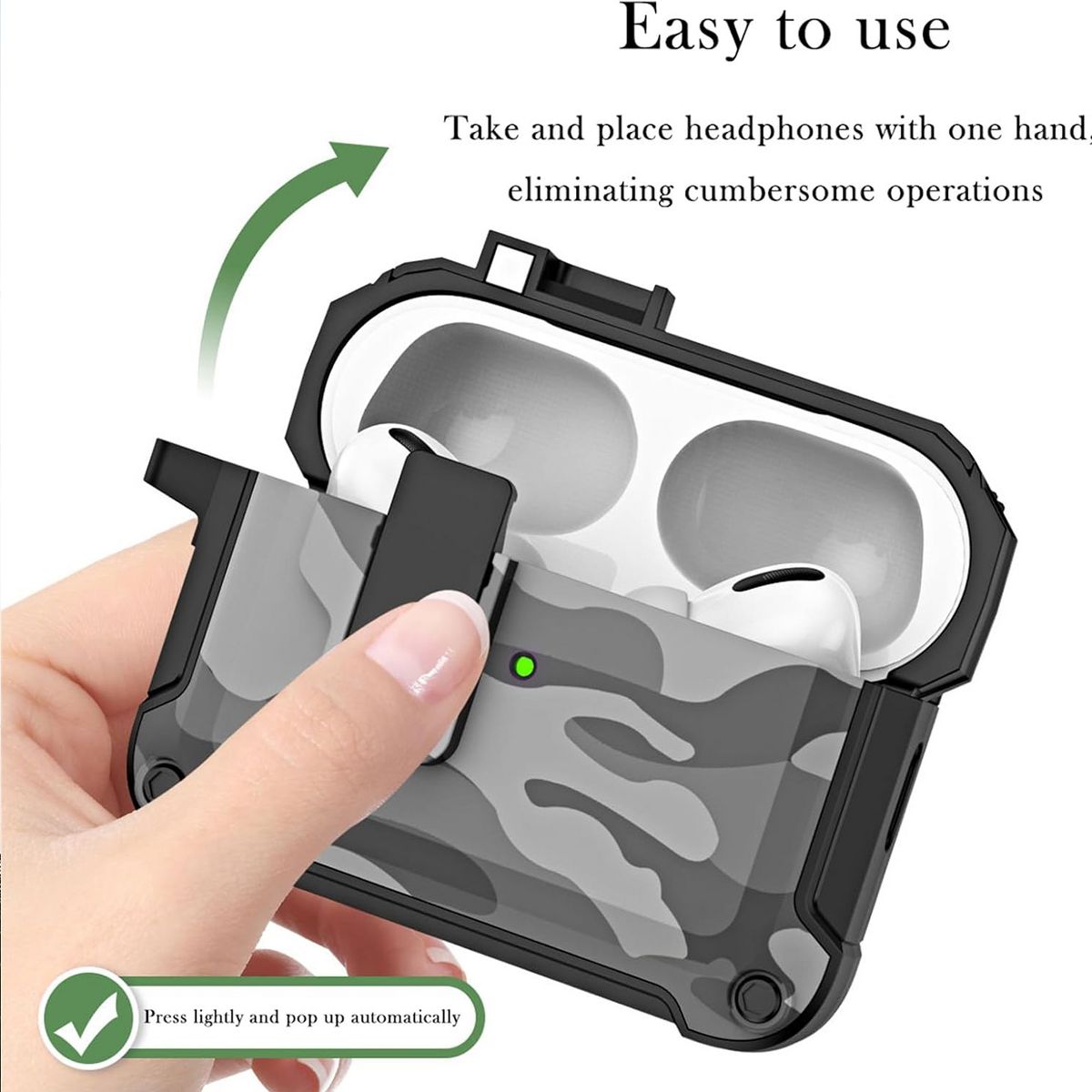 This AirPods Pro Case Cover blends rugged style with smart functionality, featuring a trendy camouflage design, automatic pop-up mechanism, detachable keychain, and secure lock clip—compatible with both AirPods Pro 2nd Generation and 1st Generation. The camouflage pattern adds a bold, versatile look that suits outdoor enthusiasts, casual users, and anyone who prefers understated yet distinctive tech accessories. Unlike plain cases, its camo print hides minor scuffs or stains, maintaining a fresh appearance even with daily use.