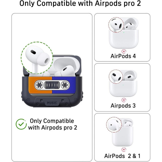 This Case for AirPods Pro 2 merges nostalgic charm with modern functionality, featuring a retro vintage cassette tape design that pays homage to classic music culture—making it a standout accessory for music enthusiasts and style-conscious men and women alike. Tailored exclusively for the AirPods Pro 2nd Generation, the case captures the iconic details of 1980s/90s cassette tapes: from the realistic “label” print to the textured “plastic” shell and tiny simulated “spools,” it adds a playful, nostalgic twist to your daily tech gear without compromising on protection or usability.
