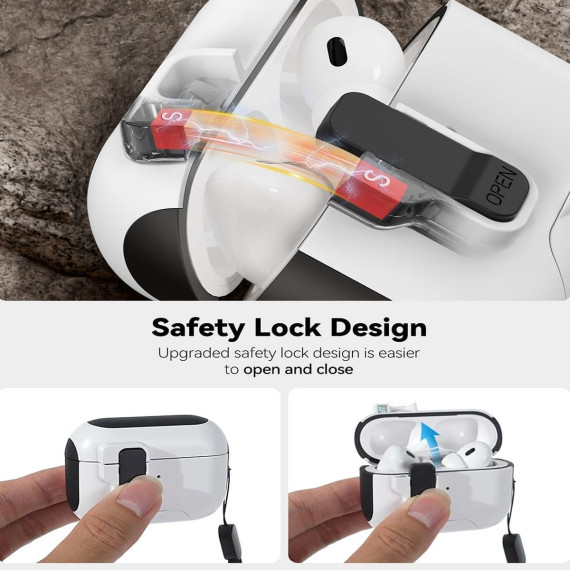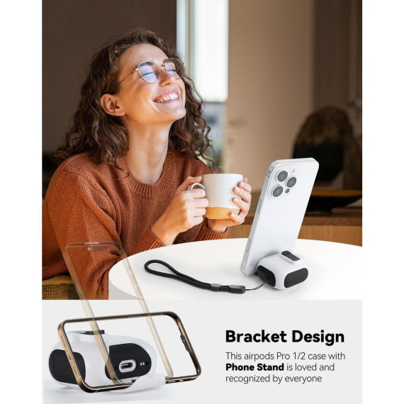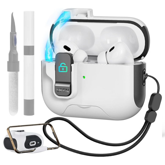 This Shockproof Hard Case is a versatile, all-in-one accessory tailored for both AirPods Pro 2nd and 1st Generation, featuring a crisp white finish, durable protective design, and practical extras—including a built-in phone holder, a dedicated cleaner kit, and a secure lock. Crafted to safeguard your AirPods Pro while adding everyday functionality, the case boasts a tough hard shell (typically made from high-impact PC material) that shields against accidental drops, bumps, and scratches. Unlike soft silicone cases that offer limited impact resistance, this hard cover maintains its shape and structural integrity even after heavy use, keeping your AirPods Pro charging case safe from daily wear, travel jostles, or purse clutter.