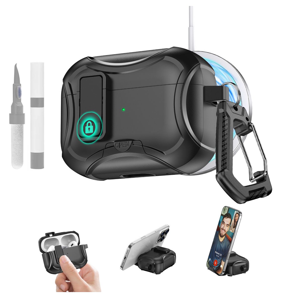 This AirPods Pro 3 Case is a comprehensive protective solution designed to shield your AirPods Pro 3 from daily damage, featuring a shockproof structure, MagSafe magnetic design, drop-proof lock, and a bonus cleaning kit—blending robust protection with user-friendly functionality. Unlike basic cases that only cover the body or lack secure closures, this protective cover solves three key pain points for AirPods users: it absorbs impact to prevent damage from drops, uses MagSafe for seamless wireless charging and accessory pairing, and includes a drop-proof lock to keep the case lid securely closed. Crafted from high-quality, flexible TPU with a reinforced bumper design, it balances durability with a slim profile—protecting your AirPods without adding bulk to your pocket or bag.