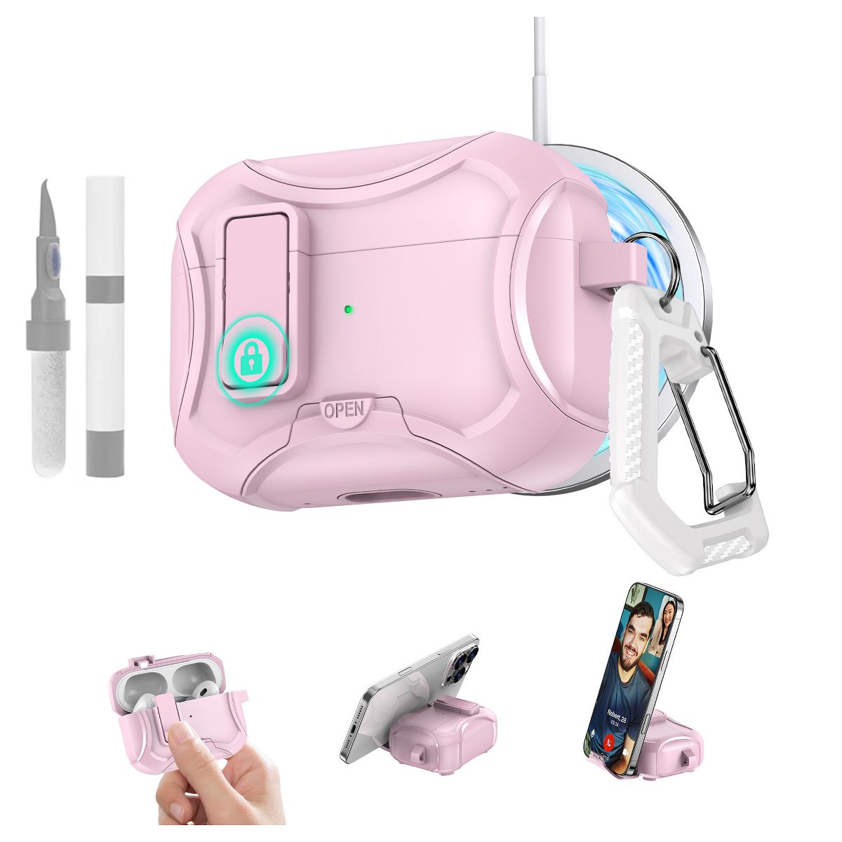 This AirPods Pro 3 Case is a comprehensive protective solution designed to shield your AirPods Pro 3 from daily damage, featuring a shockproof structure, MagSafe magnetic design, drop-proof lock, and a bonus cleaning kit—blending robust protection with user-friendly functionality. Unlike basic cases that only cover the body or lack secure closures, this protective cover solves three key pain points for AirPods users: it absorbs impact to prevent damage from drops, uses MagSafe for seamless wireless charging and accessory pairing, and includes a drop-proof lock to keep the case lid securely closed. Crafted from high-quality, flexible TPU with a reinforced bumper design, it balances durability with a slim profile—protecting your AirPods without adding bulk to your pocket or bag.