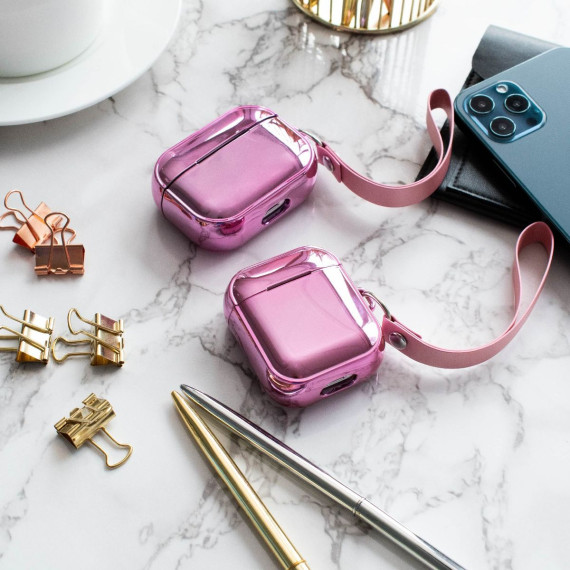 Infinite Curiosity Case Compatible with AirPods Pro - Glitter Plating Cover with Hand Strap, Pink