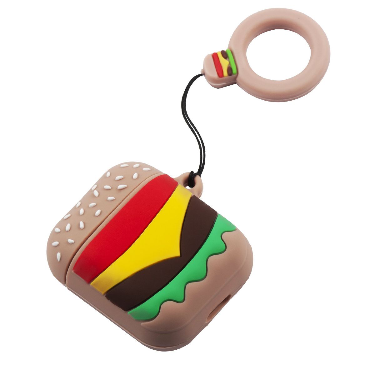 Infinite Curiosity Cute Case Compatible with AirPods 1 & 2 - Hamburger Cartoon Silicone Cover with Ring Strap