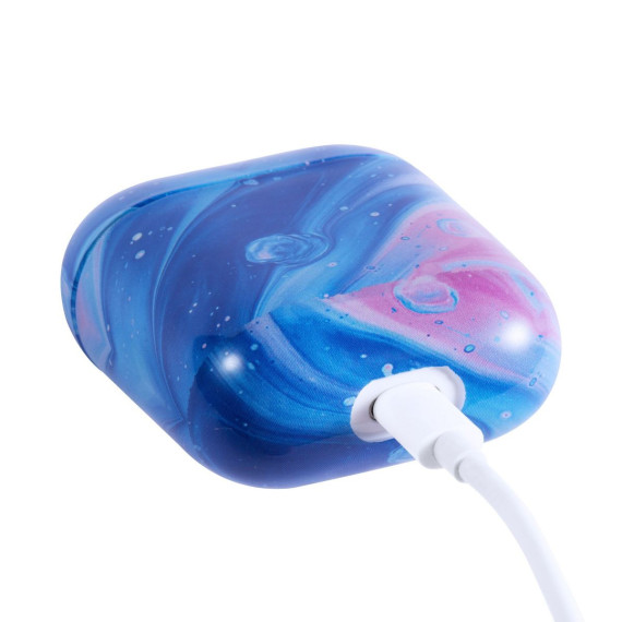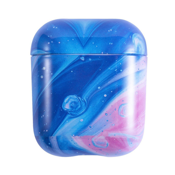 Insten Case Compatible with AirPods 1 & 2 - Glossy Marble Pattern Skin Cover, Space Blue Pink