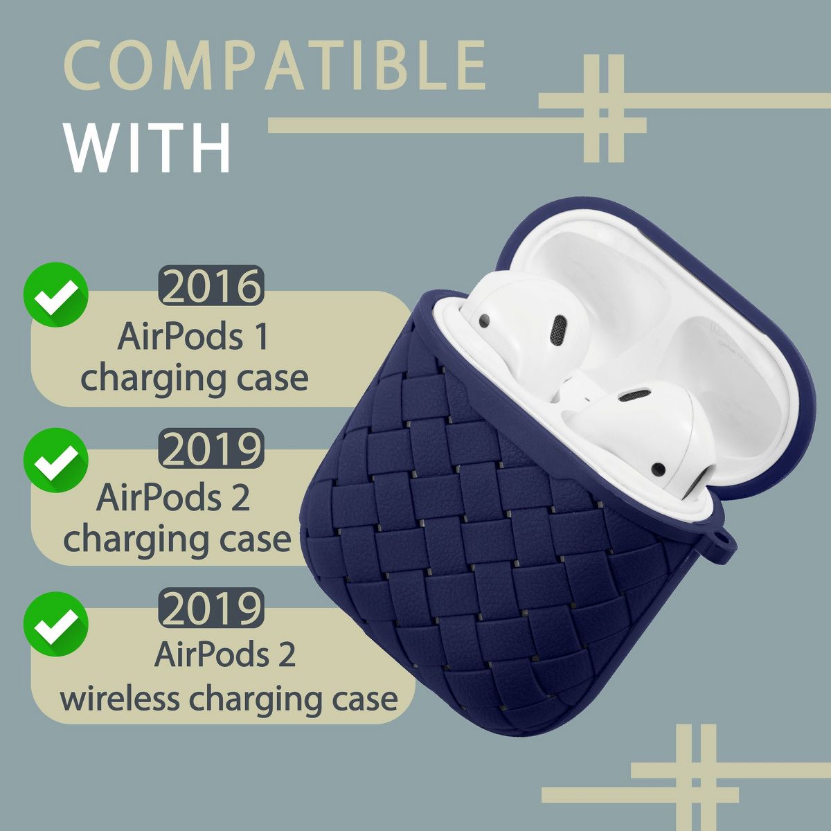 The Insten cute and cool weave shape TPU carrying case pouch covers compatible with Apple AirPods 1st Generation and 2nd Generation for man, woman, boys, girls, men and women is a perfect accessory to protect your airpods 1 and 2’s wireless charging case. These Airpod accessories are durable. It offers great protection and supports wireless and wired charging of Apple earbuds. Accessory only; device not included. Apple, iPhone®, iPad®, iPod® are registered trademarks of Apple, Inc. Apple does not endorse the use of these products. Product names are trademarks of listed manufacturers or other owners, and are not trademarks of eForCity Corp. The manufacturer does not necessarily endorse the use of these products.