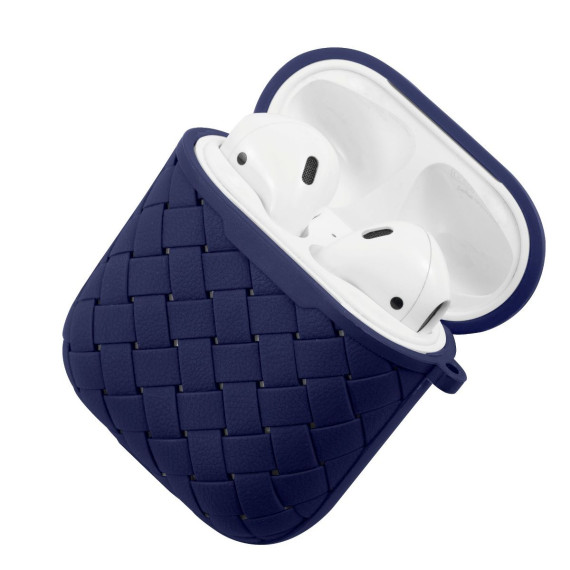 Insten Case Compatible with AirPods 1 & 2 - Weave Shape Protective Skin Cover with Keychain, Blue