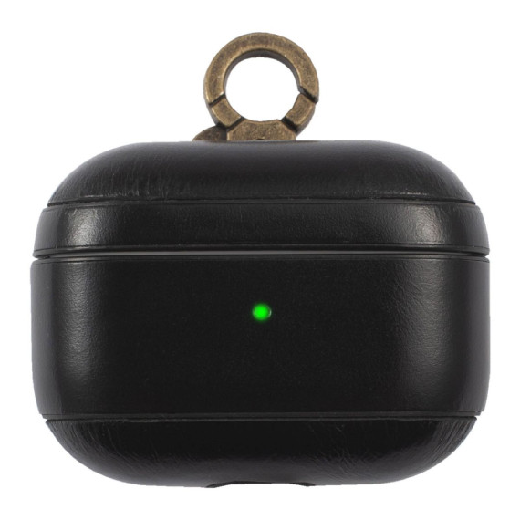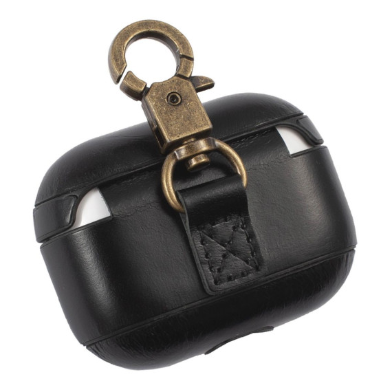 Insten Genuine Leather Case Compatible with AirPods Pro - Protective Cover with Keychain, Black