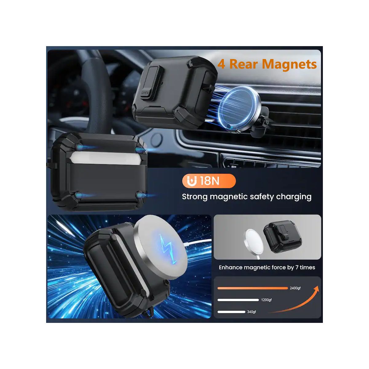OPPOSITES ATTRACT: There are 4 magnets on the back of the case so you can stick the case to any metal surface: refrigerator, filing cabinet, gym equipment, etc. Compatible with MagSafe mounts and MagSafe chargers.