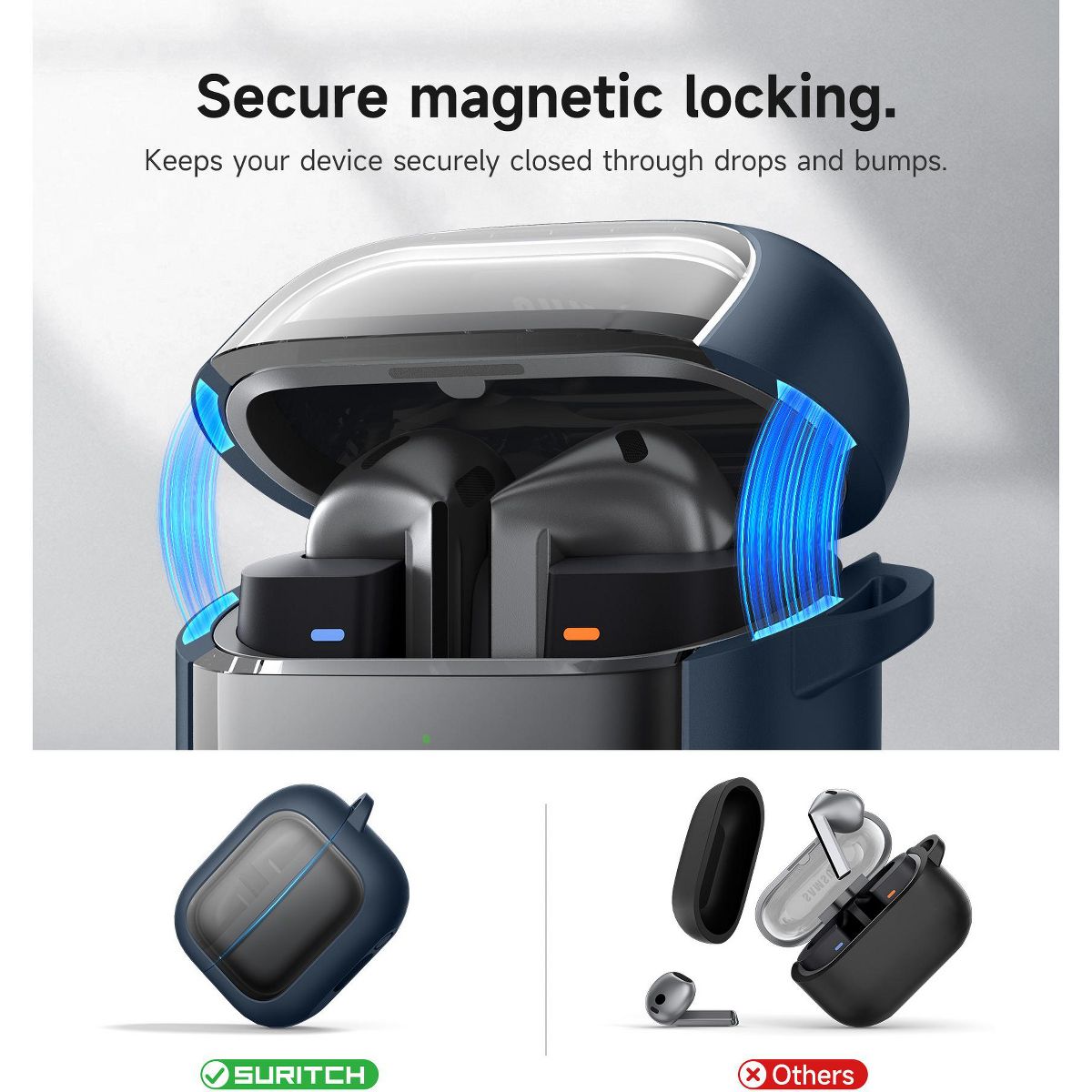 SURITCH for Samsung Galaxy Buds 3 Pro/Galaxy Buds 3 Case, Magnetic Bumper Cases, Shockproof Protective Covers with Carabiner & Cleaning Kit, Navy