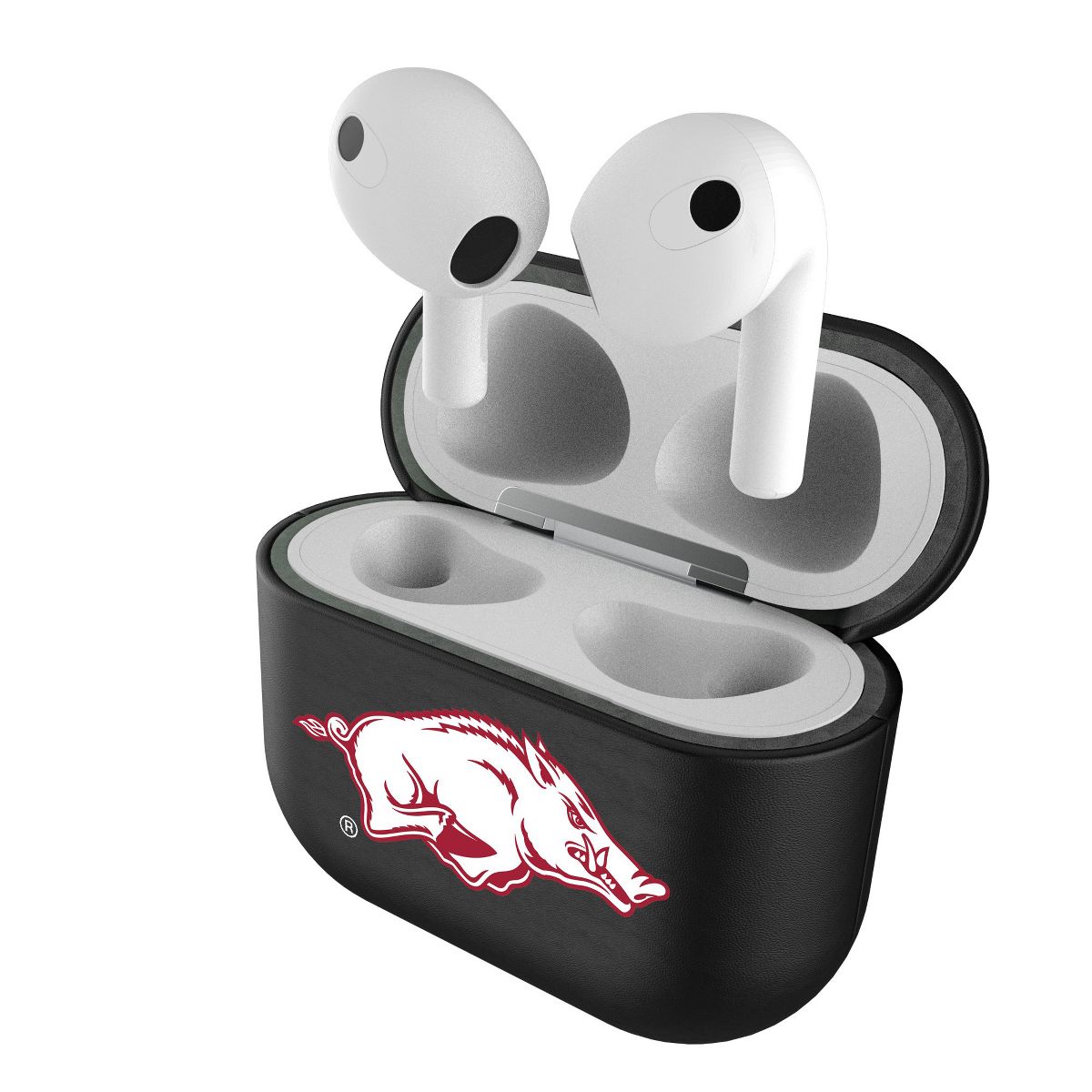 Give your AirPods a safe and stylish upgrade with this officially licensed, high quality, black leatherette AirPod case cover with full color print. This case is all about merging protection with that proud fan feeling. Case has peek hole to see charging light. Designed and decorated by Keyscaper in Tualatin, Oregon, USA.