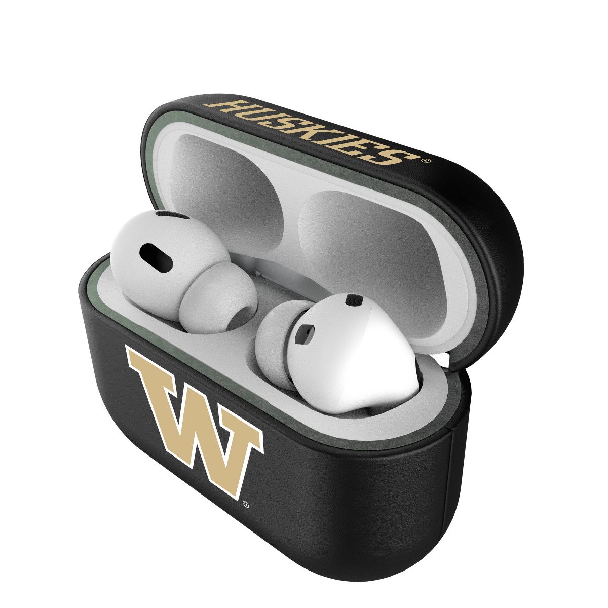 Give your AirPods a safe and stylish upgrade with this officially licensed, high quality, black leatherette AirPod case cover with full color print. This case is all about merging protection with that proud fan feeling. Case has peek hole to see charging light. Designed and decorated by Keyscaper in Tualatin, Oregon, USA.