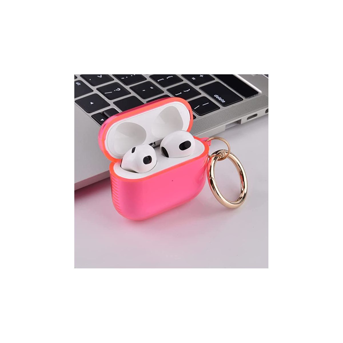 Case Compatible with AirPods 3 Case Generation 3 Cover Soft Clear TPU Transparent Protective Shockproof Case Designed with Keychain for AirPod 3 Charging Case. Crafted with the finest quality materials, this case not only adds a touch of elegance to your AirPods, but it also provides protection against scratches, drops, and dust. Its slim profile allows for easy storage and portability, making it a great option for those on the go. Model Compatibility: Apple AirPods (3rd generation, 2021) Specifications Color: Pink, Size: 4.45"Material: TPU (Thermoplastic Polyurethane) Weight: 0.2 lbs