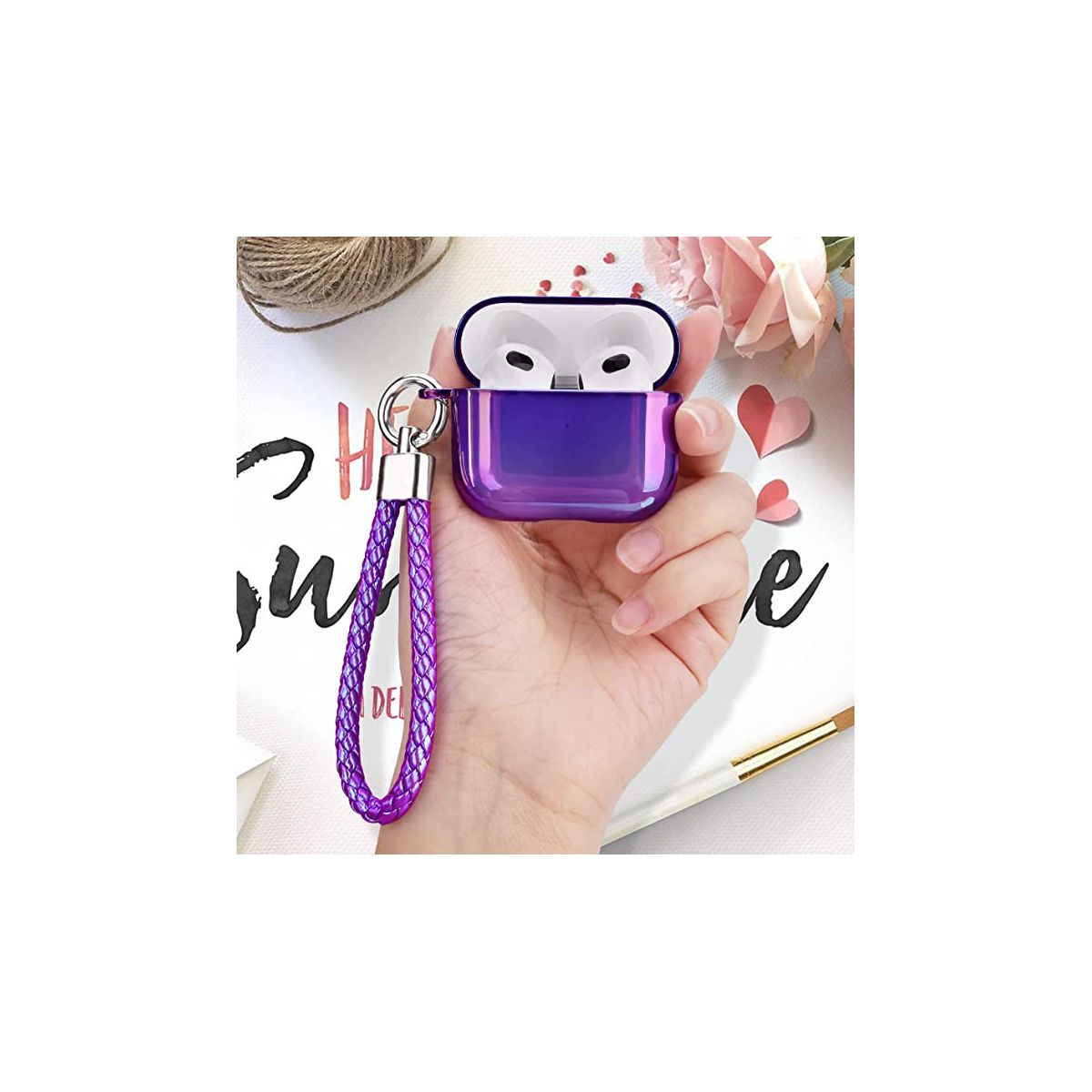 Cute Silicone Case for AirPods 3 Generation 3 Case with Bling Keychain. Perfect gift for your AirPods 3Unique Design Keychain for AIRPODS 3 Case cute Five-leaf clover Keychain design makes your AirPods look unique and fashionable when you attach it to your key, your belt, your bags etc. 360 Full Protection with our silicone airpods 3 case as its light, thin touch feelings, impact-resistant, and scratch-proof is easy to carry by attaching to your belt or larger bag with the detachable stainless steel keychain when you are traveling or outdoor sport. The case for Airpods 3 is a convenience for charging your headset from a wireless charger or from the bottom charging port without removing the cover. Model Compatibility: Apple AirPods (3rd generation, 2021) Specifications Color: White, Size: 4.45"Material: TPU (Thermoplastic Polyurethane) Weight: 0.2 lbs