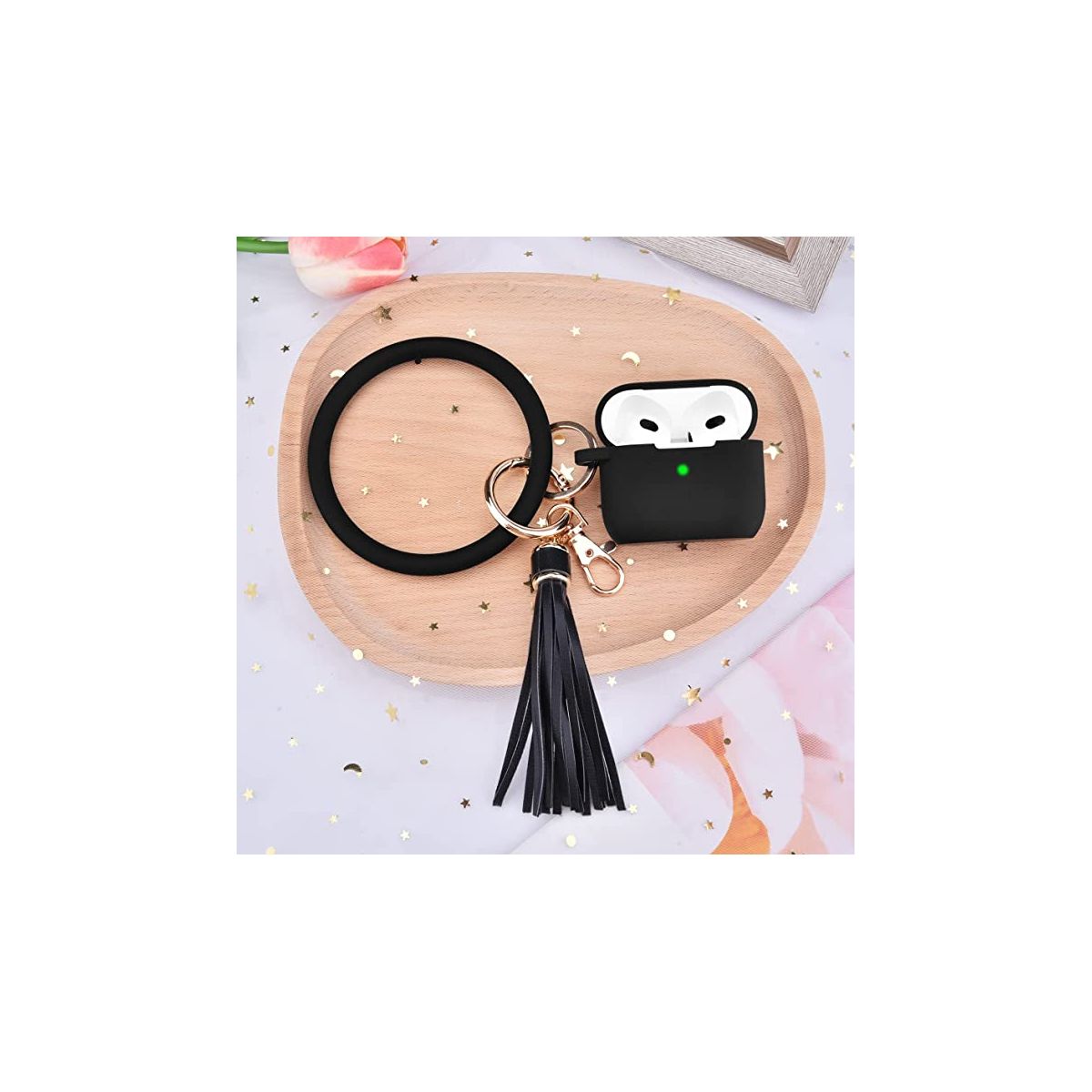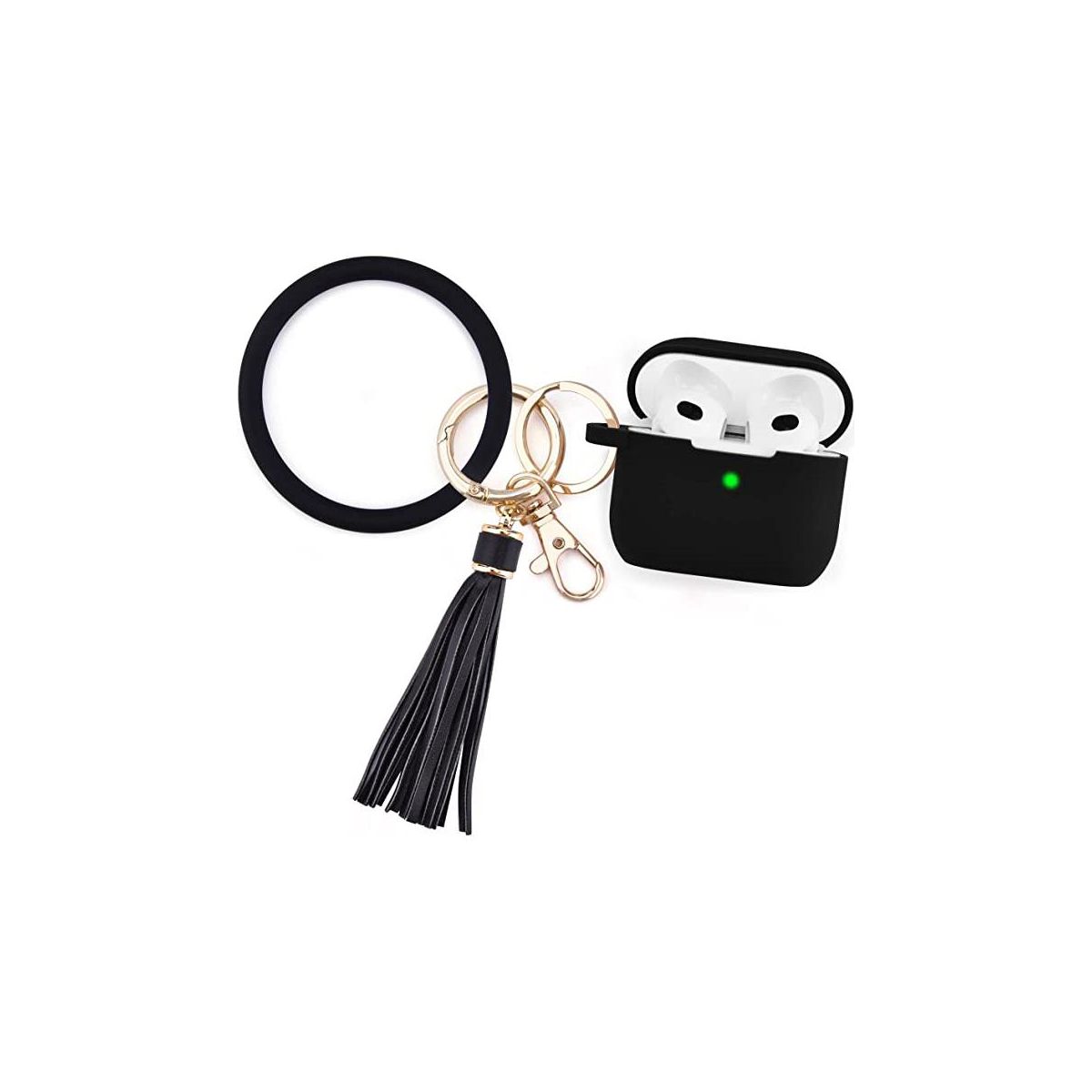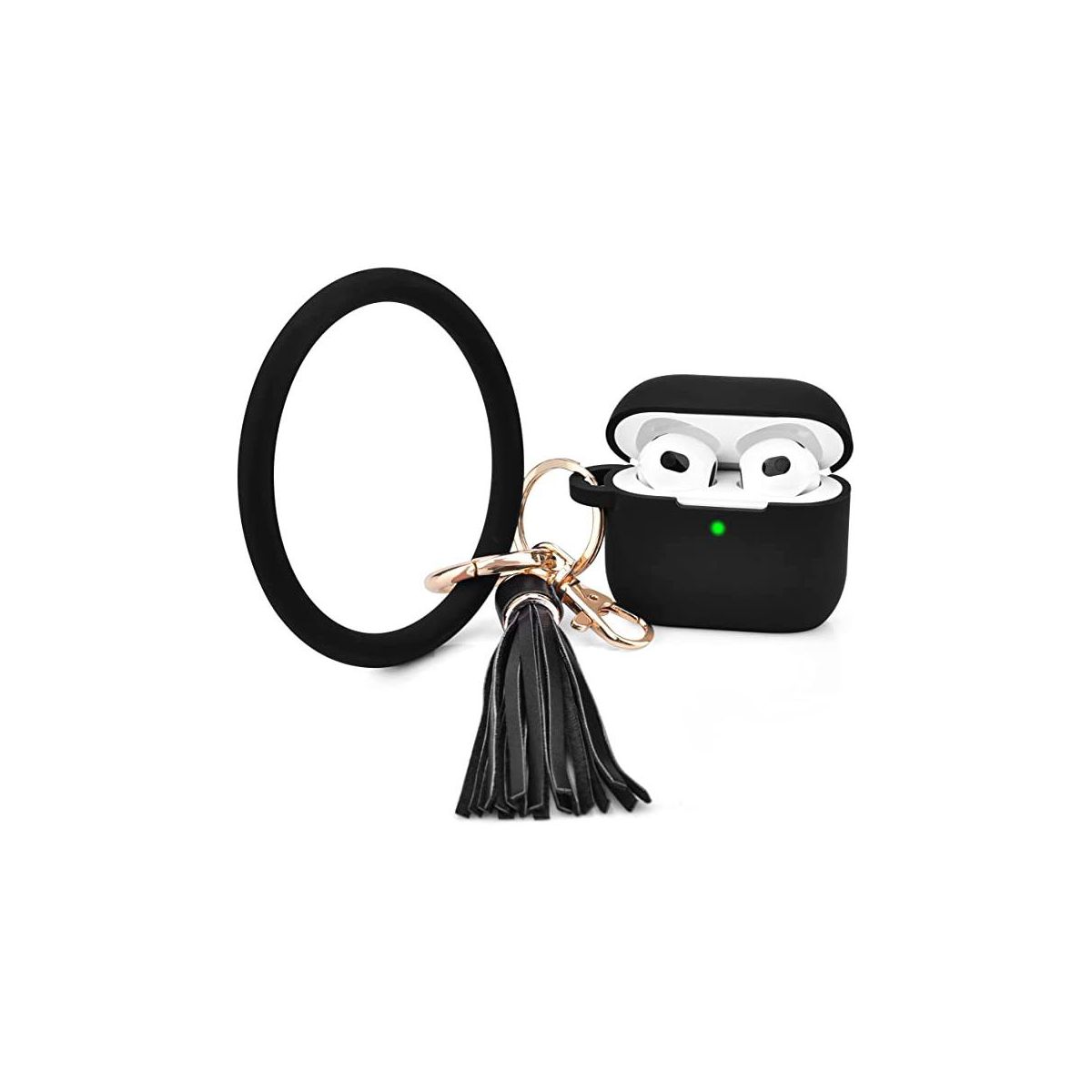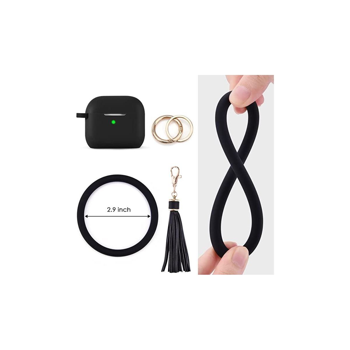 Case Compatible with AirPods 3 Case Generation 3 Cover Soft Clear TPU Transparent Protective Shockproof Case Designed with Keychain for AirPod 3 Charging Case. Made from durable and high-quality materials, this AirPods 3 case is built to withstand daily wear and tear. Its precise cutouts provide easy access to your AirPods' charging port and pairing button, so you can charge and connect your AirPods without any hassle. Model Compatibility: Apple AirPods (3rd generation, 2021) Specifications Color: Black, Material: Silicone Battery: No Battery Used Weight: 0.2 lbs