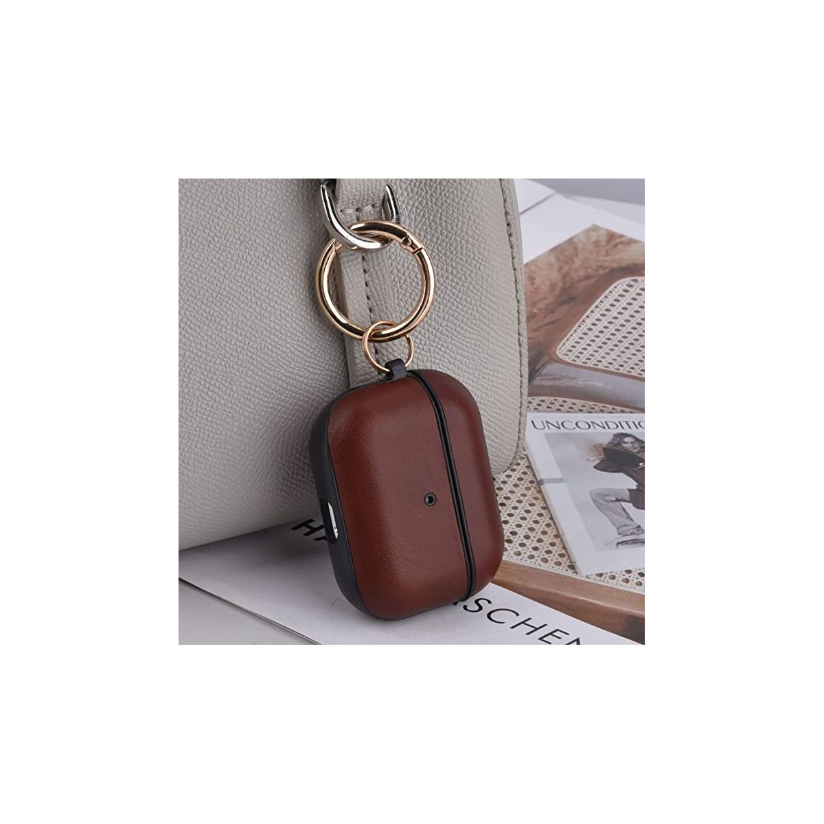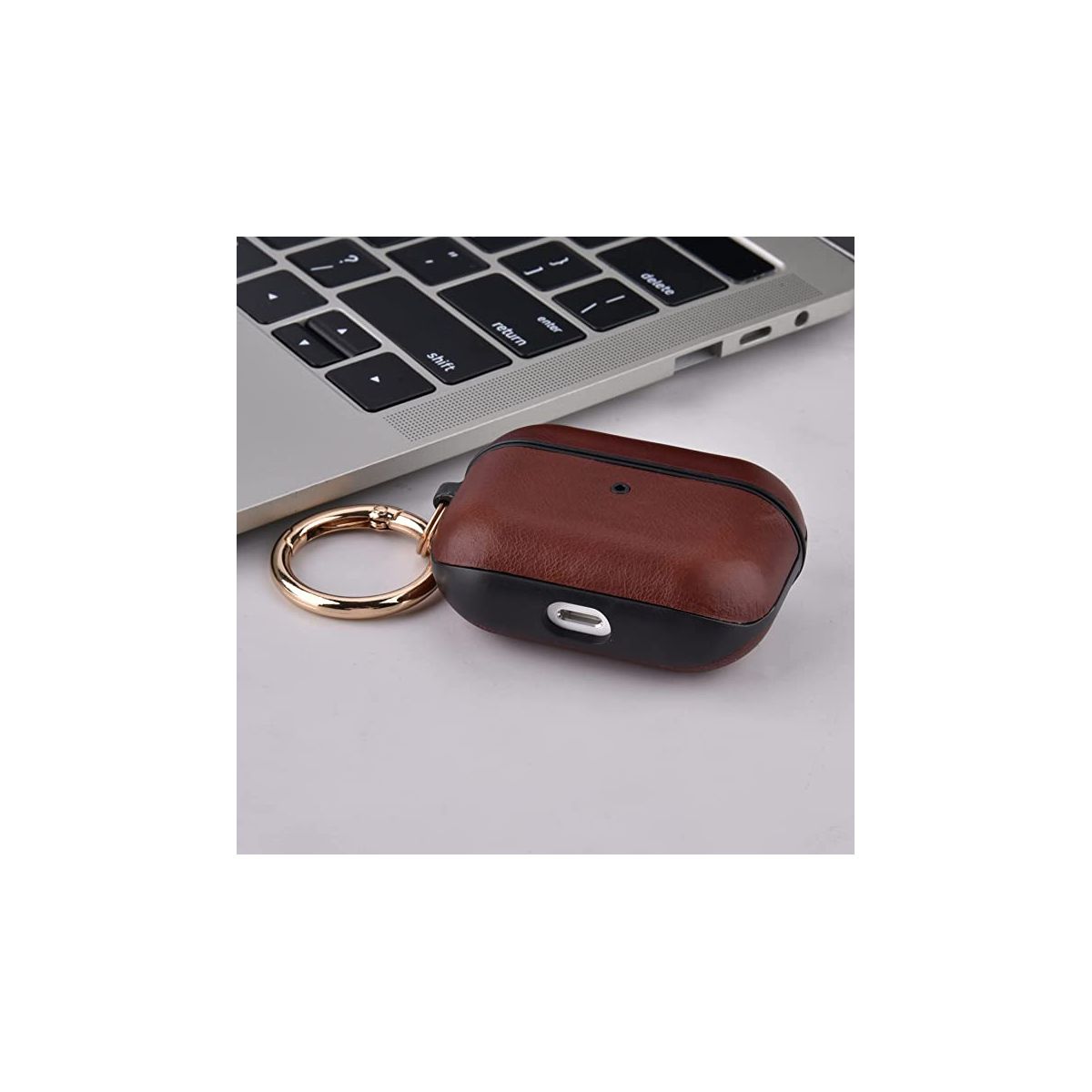 Worryfree Gadgets Case Compatible with Apple AirPods Pro Case Genuine Leather & Full Protective Pro Charging Case Skin Cover with Keychain - Tan