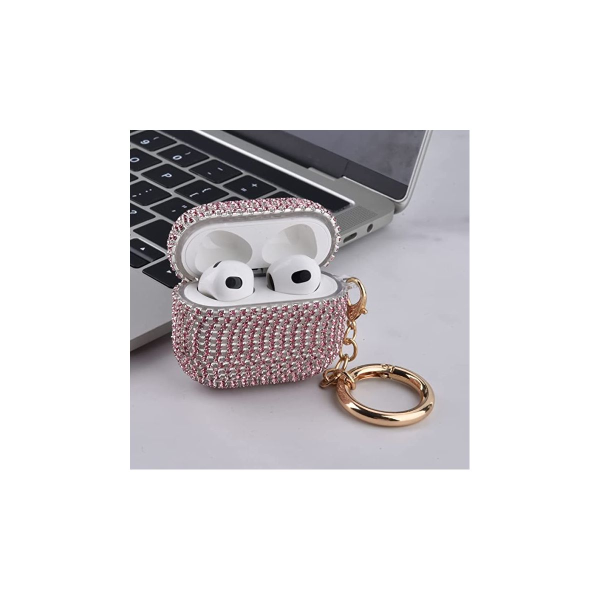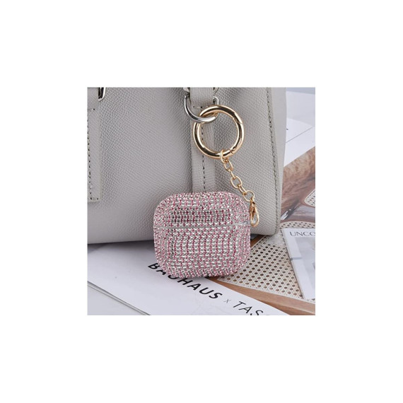 Worryfree Gadgets Case for Airpods 3rd Generation Case Sparkly Diamond with Keychain TPU Shockproof Protective Bling Rhinestone - Full Bling Pink