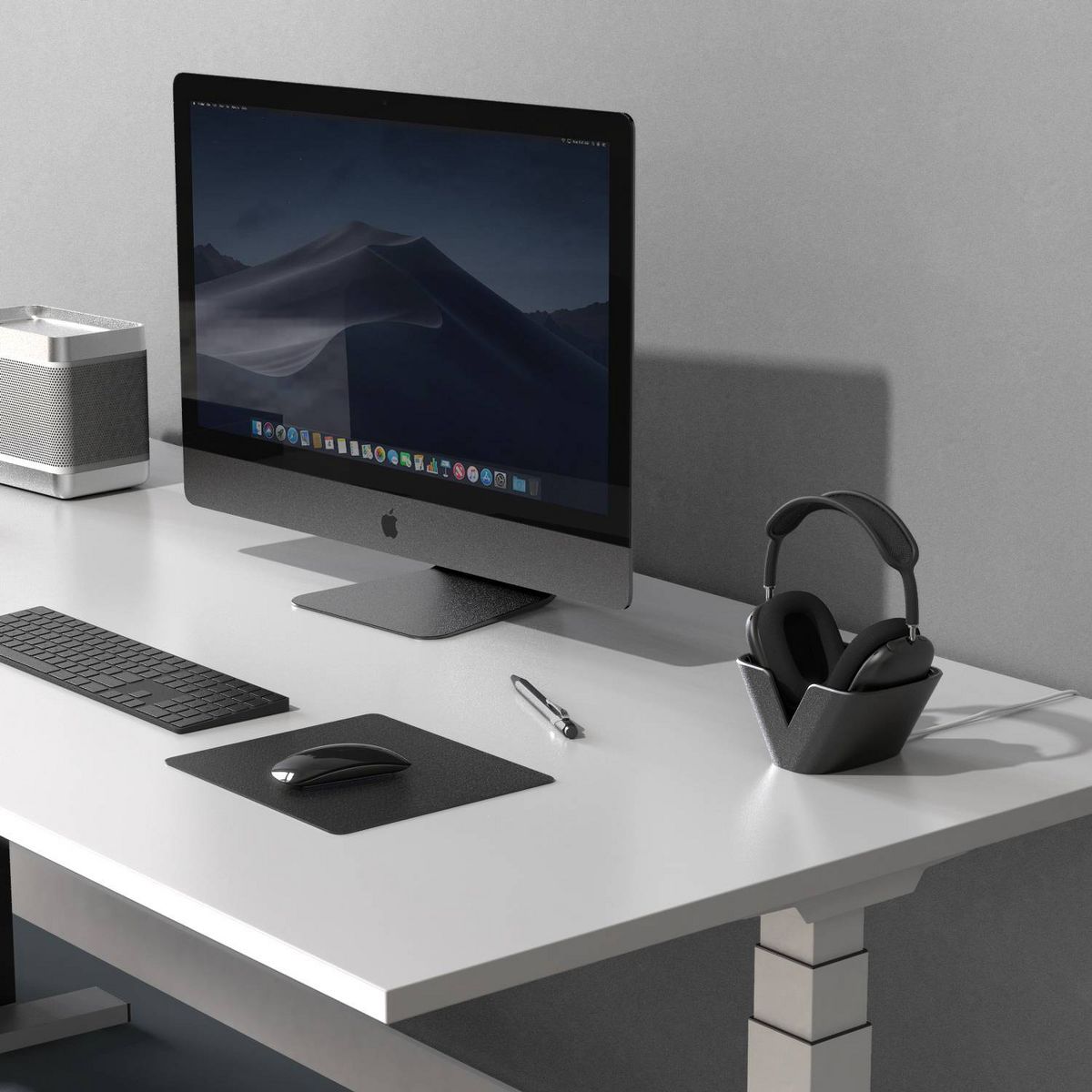 Base Stand is the perfect place to store and charge your AirPods Max. Machined from solid metal, with a soft rubberized interior and weighted base, Base Stand is a refined addition to any space. An innovative charging cable management solution pulls excess cable down and away, keeping your space neat and your AirPods Max fully charged.