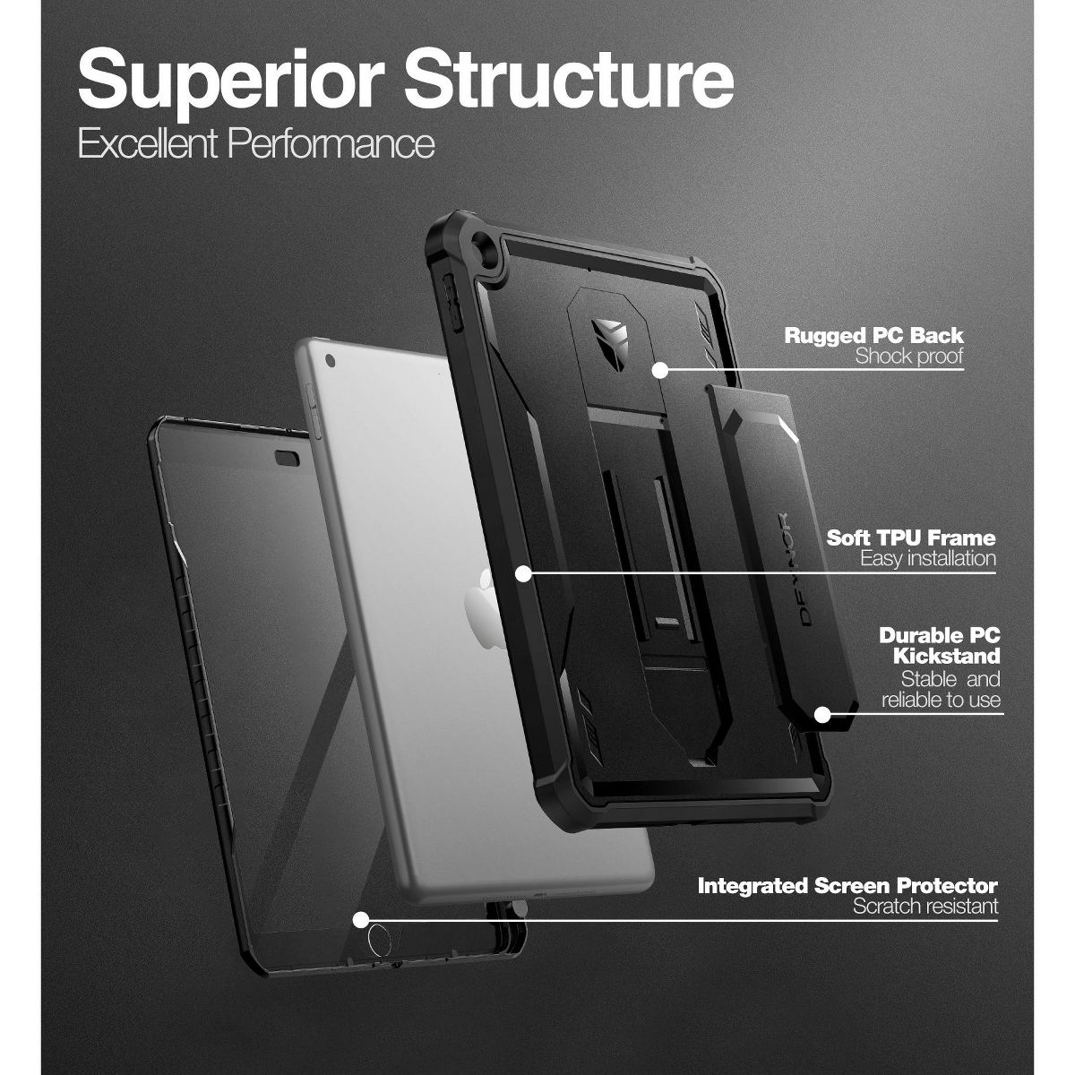 Dexnor for iPad 9.7 Inch 6th /5th Generation(2018/2017), [Built in Screen Protector & Kickstand] with Pen Holder Heavy Duty Shockproof Covere-Black