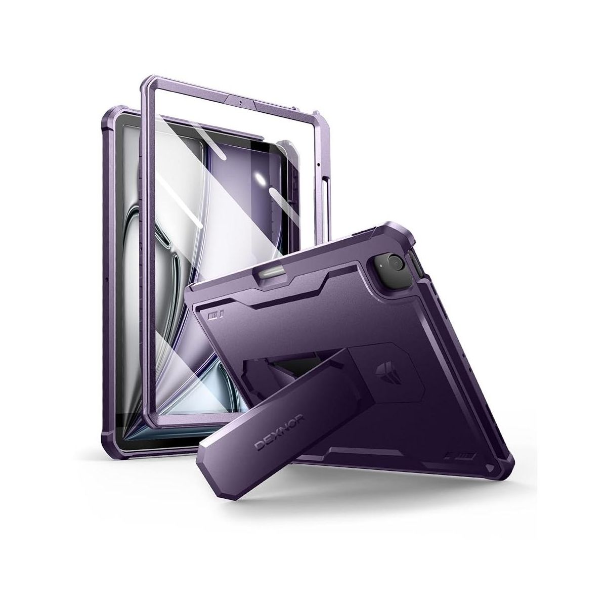 Dexnor for iPad Air 13 Inch Case 2025/2024 (M3/M2) with Pencil Holder, [Built-in Screen Protector & Multi-Angle Kickstand] Shockproof, Purple
