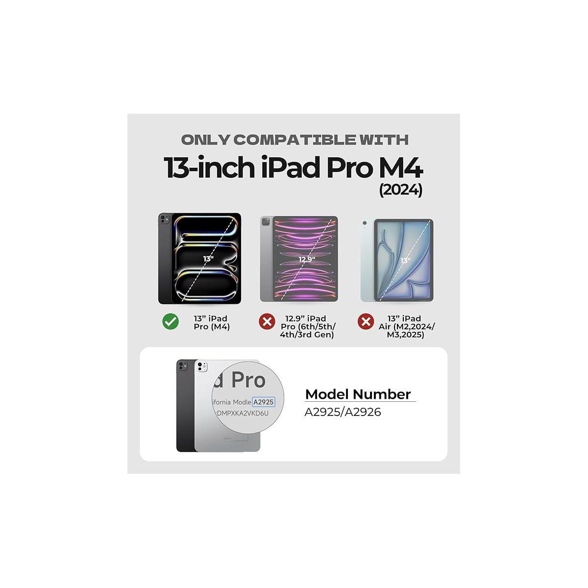 Compatibility: Crafted exclusively for iPad Pro 13 inch M4 (2024 | Models A2925/A2926). Its precise cutouts ensure unobstructed access to all essential controls, including buttons, charging ports, and the rear camera, while maintaining full functionality and a sleek profile. Before purchasing, please make sure that your phone model matches our phone case model, otherwise the phone case may not be usable due to a mismatch in model.
