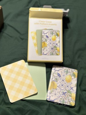 These patterns are really cute. So basically you get a clear case for your Kindle and it comes with three card stock paper like inserts. It has designs on both sides of the inserts. I bought my Kindle last April 2024 and my Kindle fits basically perfectly in this case with the insert.