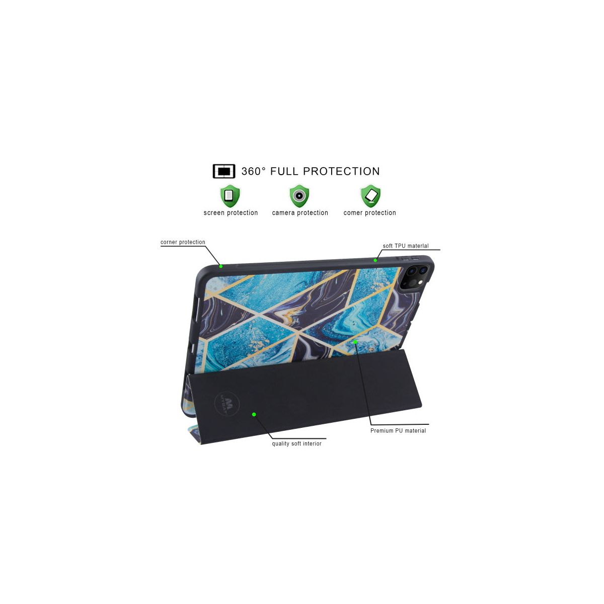 Protect your iPad in style with the MyBat Slim Fit Smart MyJacket Case, designed for the iPad Pro 11-inch (2nd, 3rd, and 4th Gen). This elegant folio cover combines everyday functionality with a sleek marbled finish, available in both black-blue and purple color options.