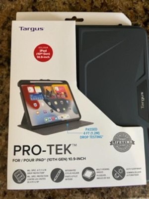 Wrap your new iPad® in strong, military-grade drop protection* with the Pro-Tek™ Case for iPad 2022. Engineered for durability, this case features a full-coverage, patent-protected tray with wraparound bezel and reinforced corners. Its precision cutouts allow complete access to controls, ports, and cameras, so it’s easy to listen to music or create photos and videos without removing the case. It even has a built-in stylus holder making it easy to store your Apple Pencil® (Pencil sold separately by Apple®). The Pro-Tek’s signature cover flips open into a stand, allowing for multiple viewing angles or typing positions, and helps you find the most comfortable placement whether you’re scrolling, posting, or streaming the latest movie. Bonus: This case is also structurally designed with innovative audio scoops to help boost your sound.*As tested by an independent third party applying MIL-STD-810G, Method 516.6, Procedure IV.