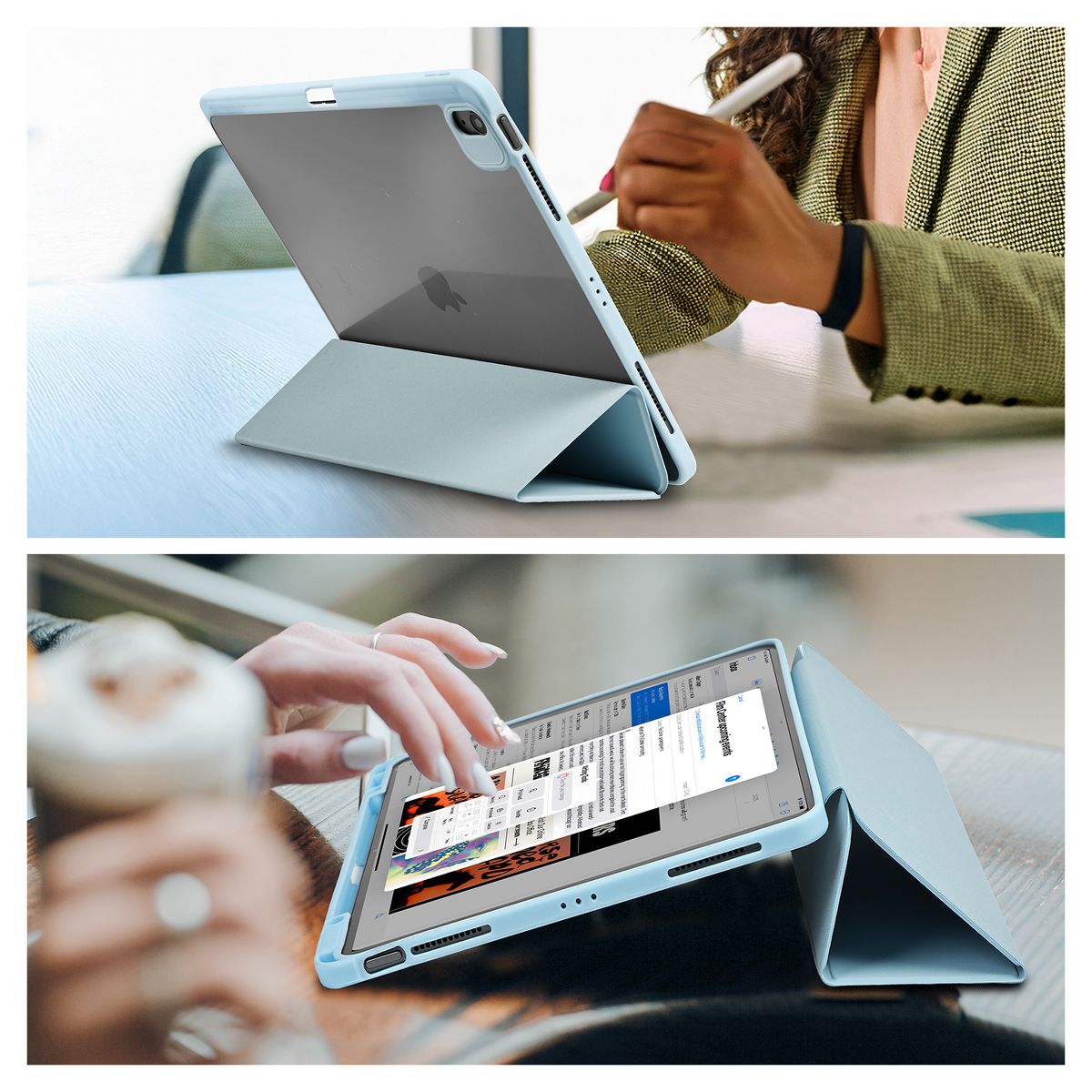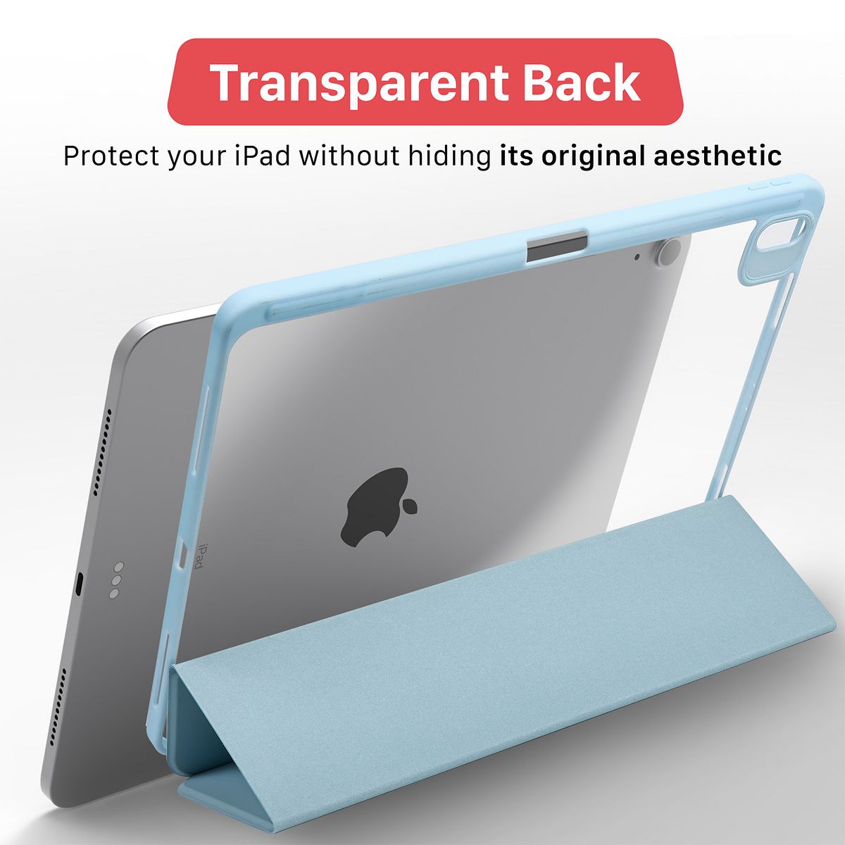 This trifold case fully envelops your iPad, offering all around protection when on the go while showing your iPad’s original aesthetic. The case also includes a slot for your Apple Pencil.