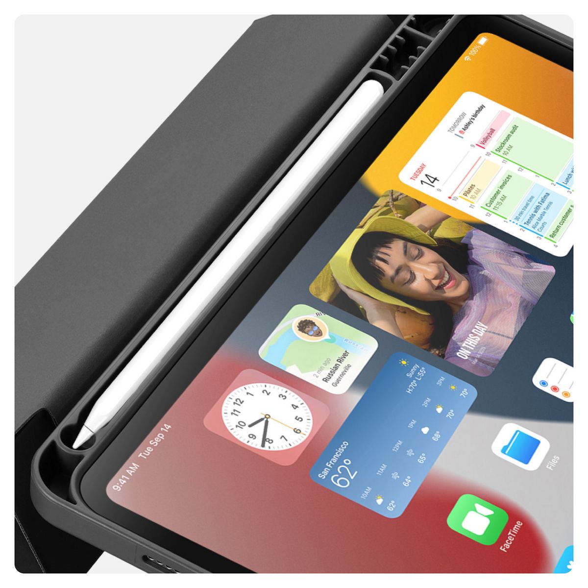 This trifold case fully envelops your iPad, offering all around protection when on the go and includes a slot for your Apple Pencil.