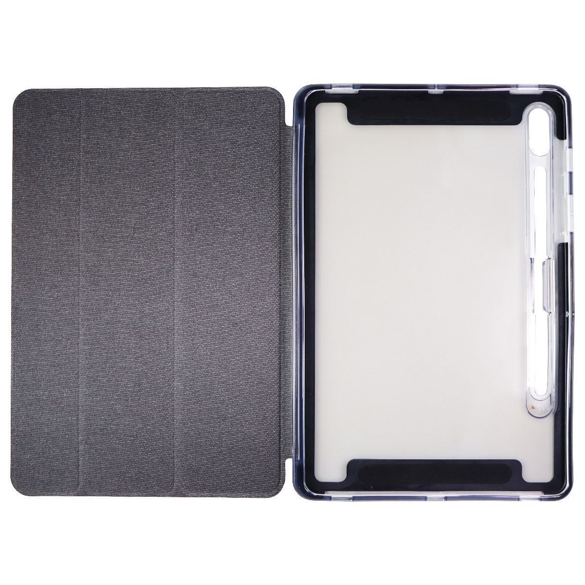 ZAGG Brompton Folio Case for Galaxy Tab S7 5G – Smoke offers dual-layer protection with a rigid back shell and PU folio cover. The folio’s magnetic closure wakes/sleeps the tablet and secures it in transit. An integrated kickstand provides multi-angle viewing, and the microfiber interior prevents scratches. Corner protection defends against drops up to 6 ft. Precision cutouts ensure access to S Pen, ports and speakers.