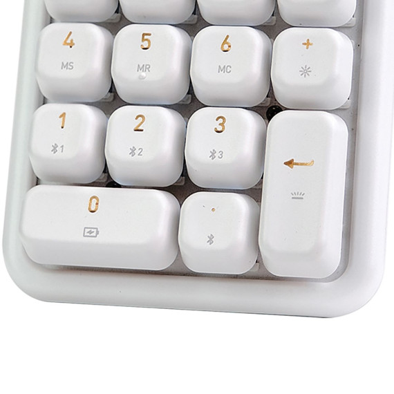 The IZO Number Pad is a wireless number pad that also functions as a calculator, giving you a 2-in-1 aesthetic addition to your workspace. By mixing the contemporary color of the body with subtle tones of the keycaps, the lighter-colored backlight creates a balanced tri-color effect. Calculator function keys were built specifically for all calculator necessities. By toggling the switch on the back, you can select between wired USB or Bluetooth® mode. Easily connect up to 3 devices in Bluetooth mode. Every corner, line, and edge follows a unified curved form, designed to be visually soothing and soft to the touch.