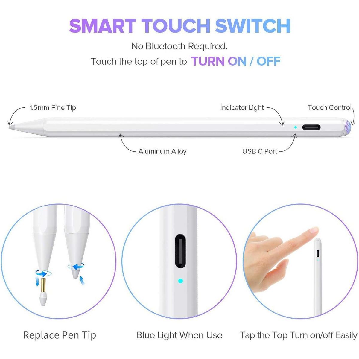 Link Stylus Pen For Apple iPad 9th & 10th Generation 2x Fast Charge 2018-2024 iPad Pro11&12.9 iPad Air 3/4/5 iPad 6-10 iPad Mini 5/6 Gen - White