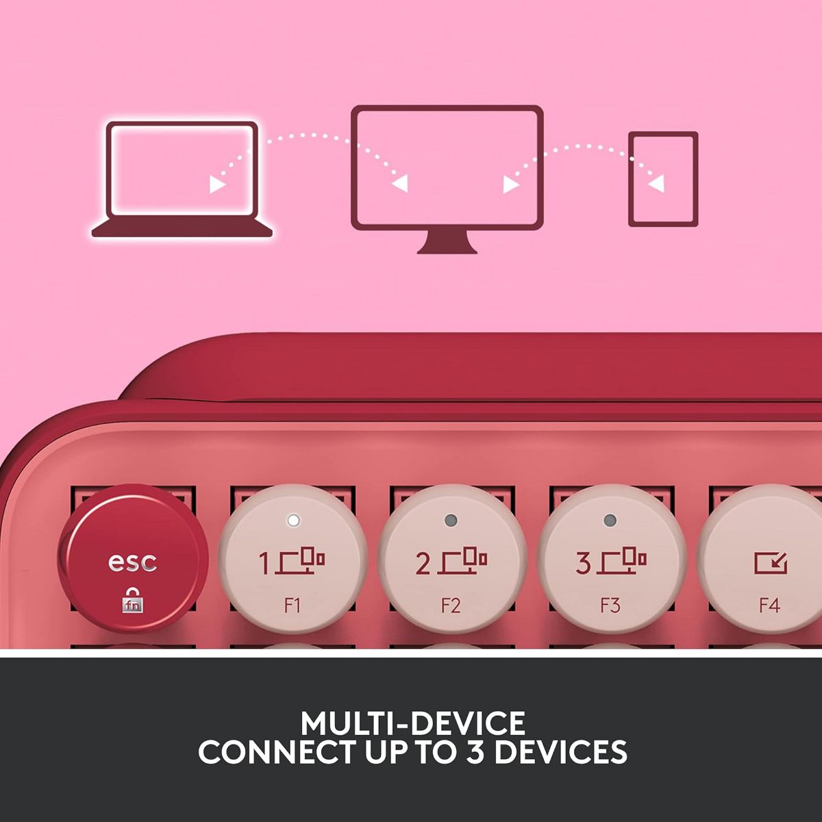 Add a pop of personality to your workspace with the Logitech POP Keys Wireless Mechanical Keyboard in Heartbreaker Rose. This eye-catching keyboard combines retro-inspired design with modern functionality, featuring satisfying mechanical switches for a tactile typing experience. Its compact layout saves desk space while offering full keyboard performance, and the swappable emoji keys let you express yourself in every message. Connect via Bluetooth or the included Logi Bolt USB receiver and easily switch between up to three devices, whether you're working on your laptop, tablet, or phone. Compatible with multiple operating systems including Windows, macOS, iPadOS, and Chrome OS, the POP Keys keyboard is as versatile as it is stylish. With long-lasting battery life of up to three years and a durable build, it’s a perfect companion for work, school, or creative expression.