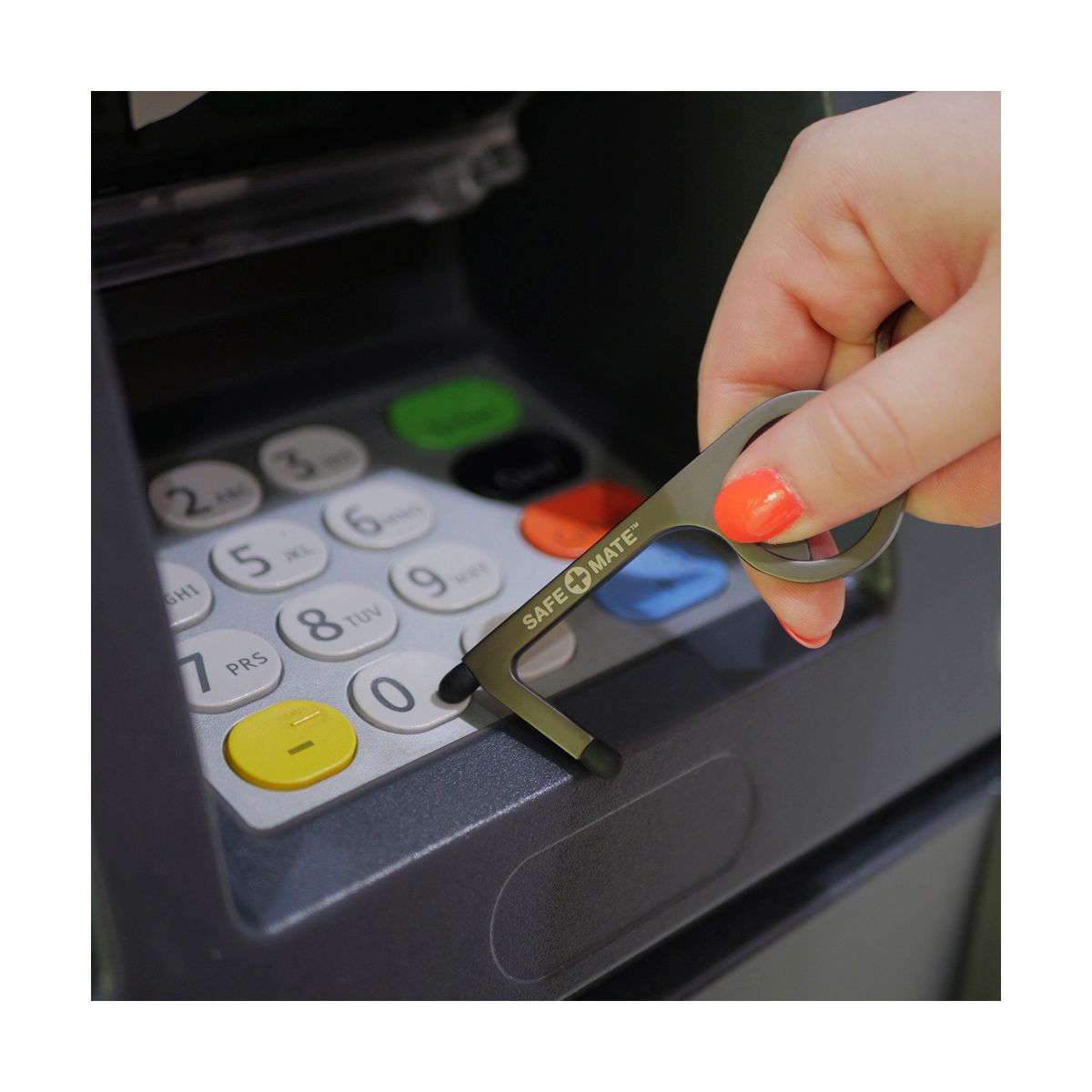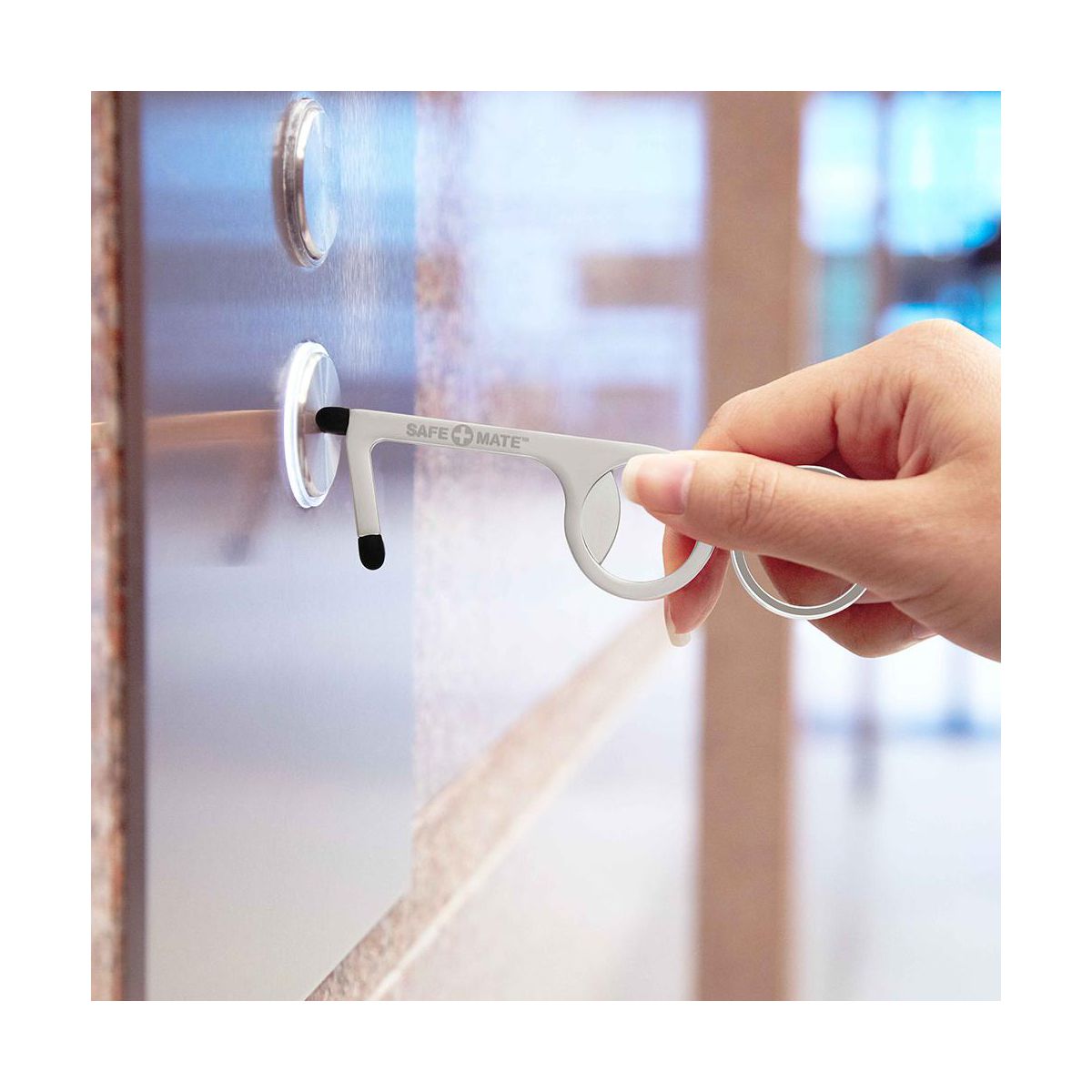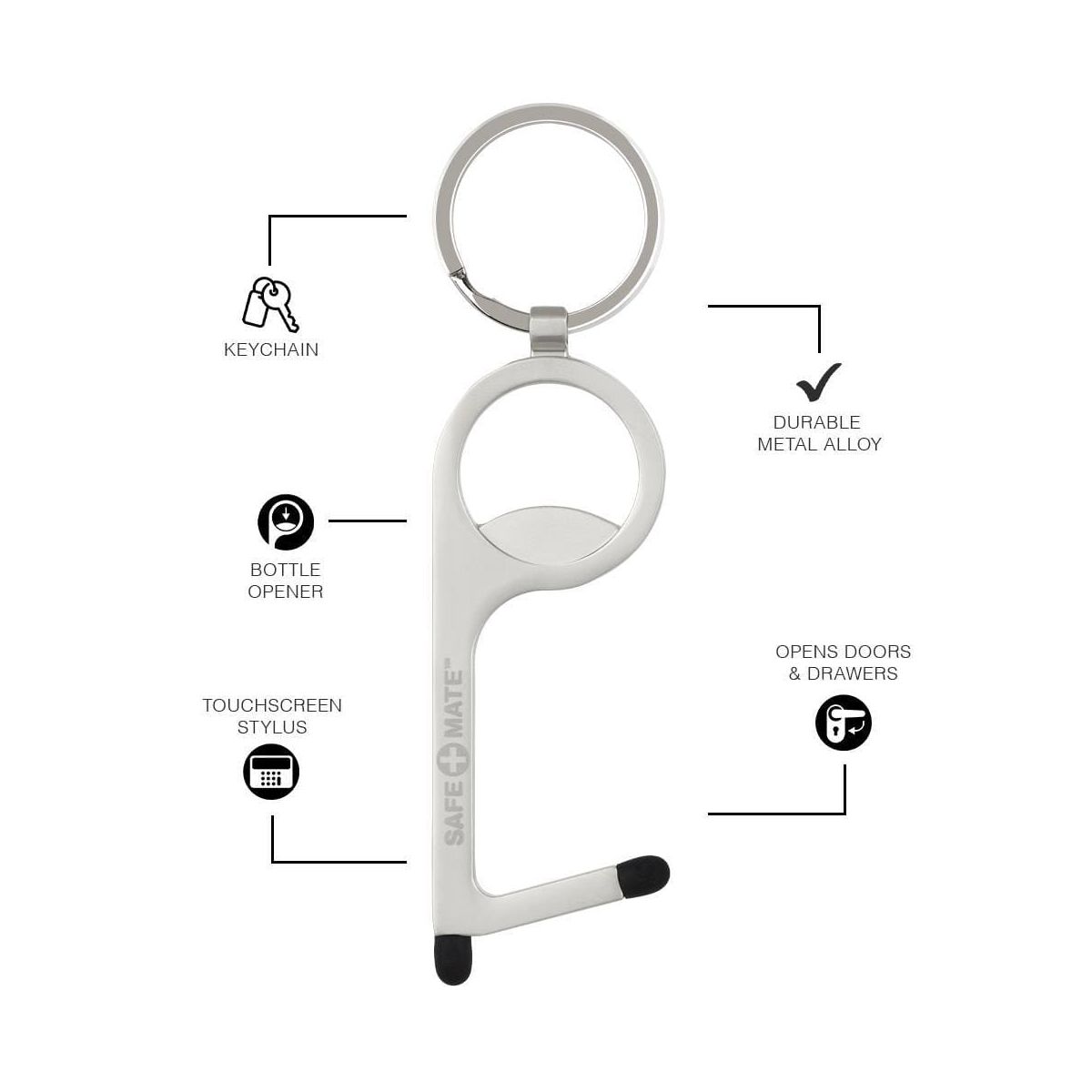 The Safe+Mate Touchless Door Opener is a practical and hygienic tool that enhances daily convenience by allowing you to open doors, operate elevators, use ATMs, gas pumps, and public touchscreens without direct contact. Its rubberized touchscreen stylus ensures precise navigation, reducing the need for disposable gloves. Additionally, it features a built-in bottle opener. Designed as a compact keychain, it’s always accessible and made from durable alloy metal with a premium matte finish, available in Black, Silver, and Rose Gold. This stylish, multifunctional tool is perfect for promoting cleanliness and ease in modern, touch-free environments.