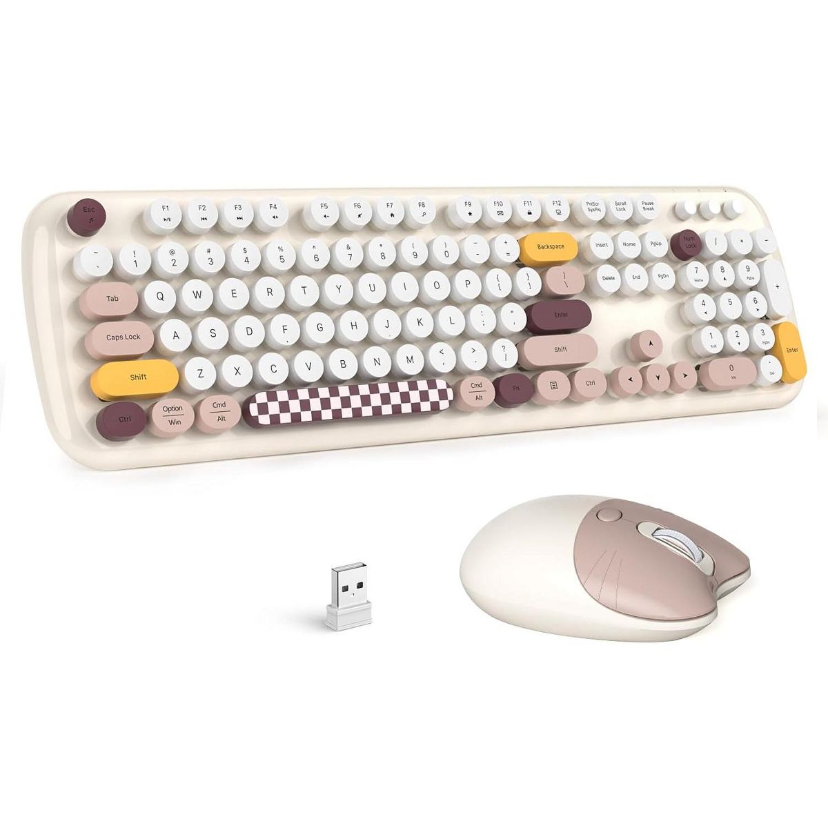 SAHARA - Wireless Keyboard & Mouse Combo - Silent Click, Colorful 104 Keys - Beige