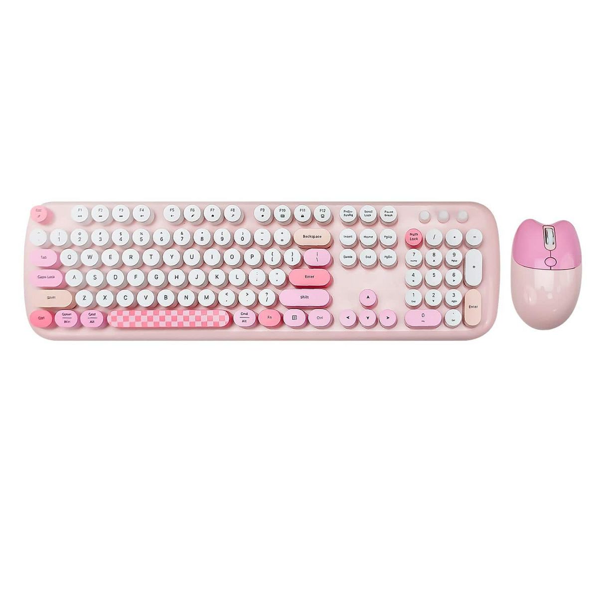 Enjoy everyday comfort and efficiency with this Wireless Keyboard and Mouse Combo, designed to brighten your workspace with a colorful 104-key layout. The rounded keycaps provide a smooth, comfortable typing feel, while the 2.4G plug-and-play connection ensures quick setup across laptops, tablets, and PCs. A USB receiver and Type-C adapter support easy multi-device use, and the foldable stand helps reduce wrist strain during longer sessions. With silent-click operation, 13 multimedia shortcuts, a 3-level adjustable DPI mouse, and automatic power-saving mode, this combo delivers reliable performance with a modern, stylish touch.