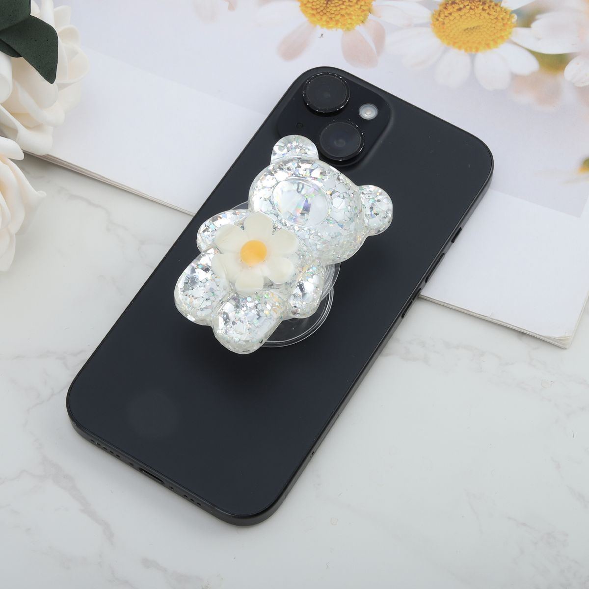 Unique Bargains Bears High-Shine Hexapetalous Flower Phone Grip Purple 1 Pc