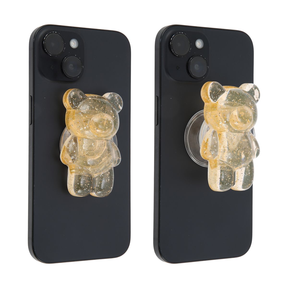 Unique Bargains Bears Silver Foil Phone Grip Transparent Red 1 Pc