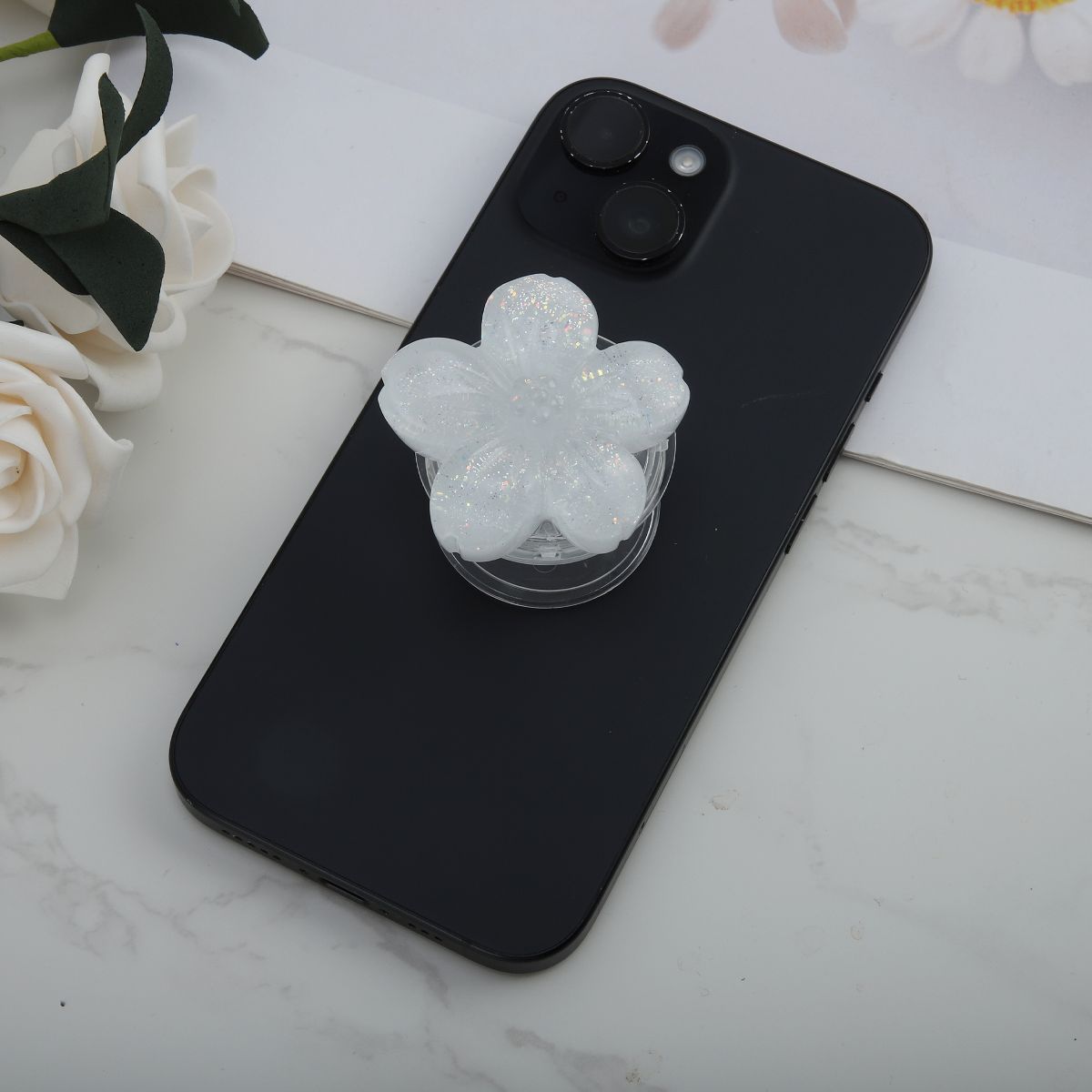 Unique Bargains Flower Morandi Sparkle Phone Grip Green 1 Pc