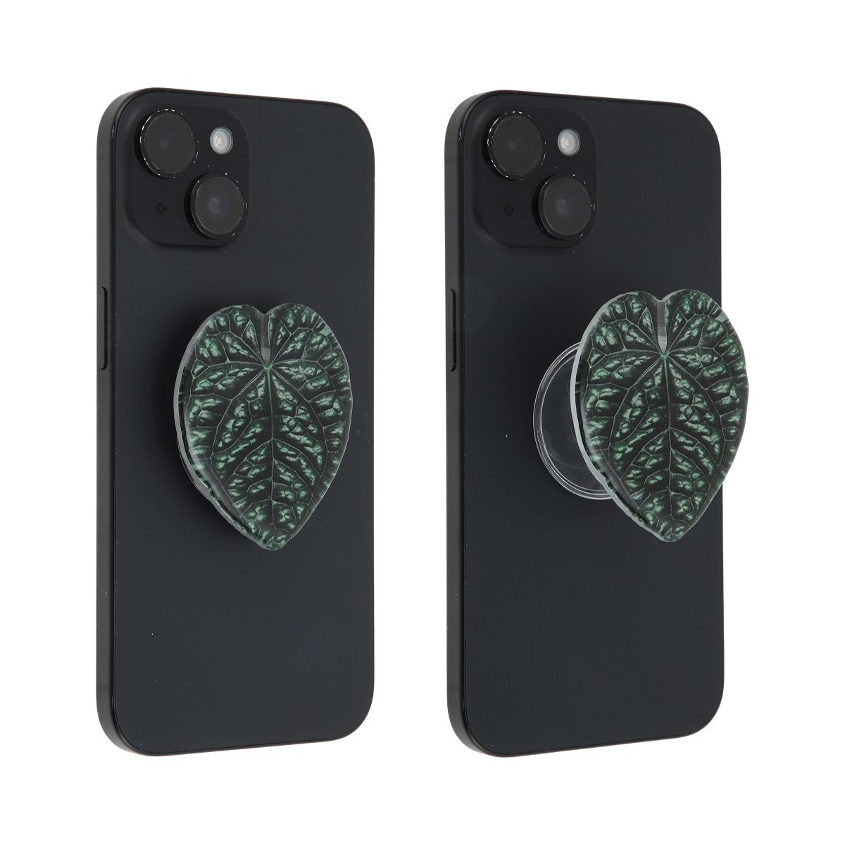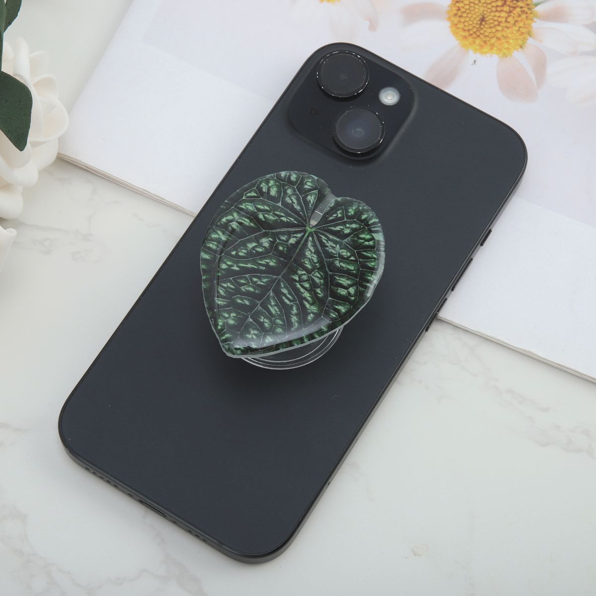 Unique Bargains Leaf #3 Phone Grip Transparent Dark Green 1 Pc