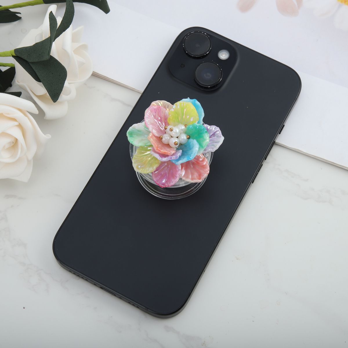 Unique Bargains Shell Flower Phone Grip Brown White 1 Pc