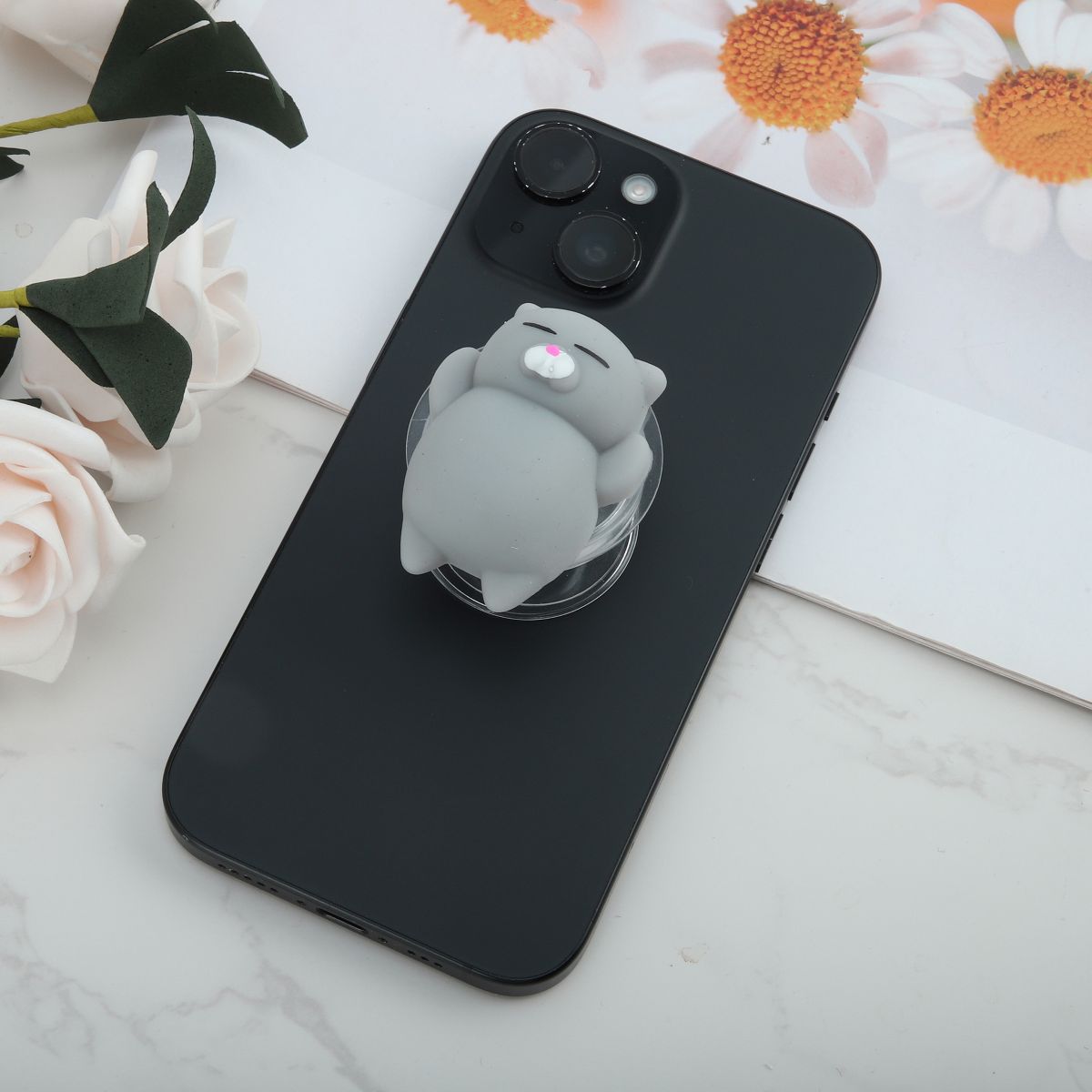Unique Bargains Squeeze Cat Phone Grip Transparent Gray 1 Pc