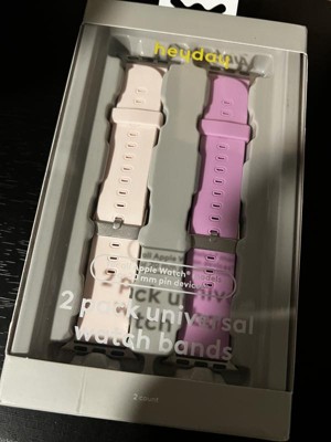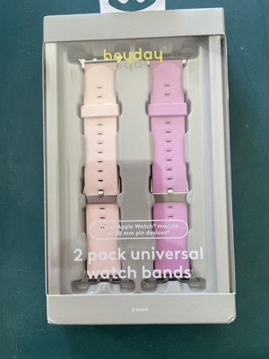 Enhance your smartwatch style with the 2pk Universal Silicone Watch Band from heyday™ Cosmetic Pink & Bright Lilac. These bands are crafted from durable silicone, ensuring a comfortable fit for daily wear. Compatible with Apple Watch, they offer a secure and adjustable fit for various wrist sizes. The multicolored design allows for easy customization, making it simple to switch up your look to match any outfit or occasion.