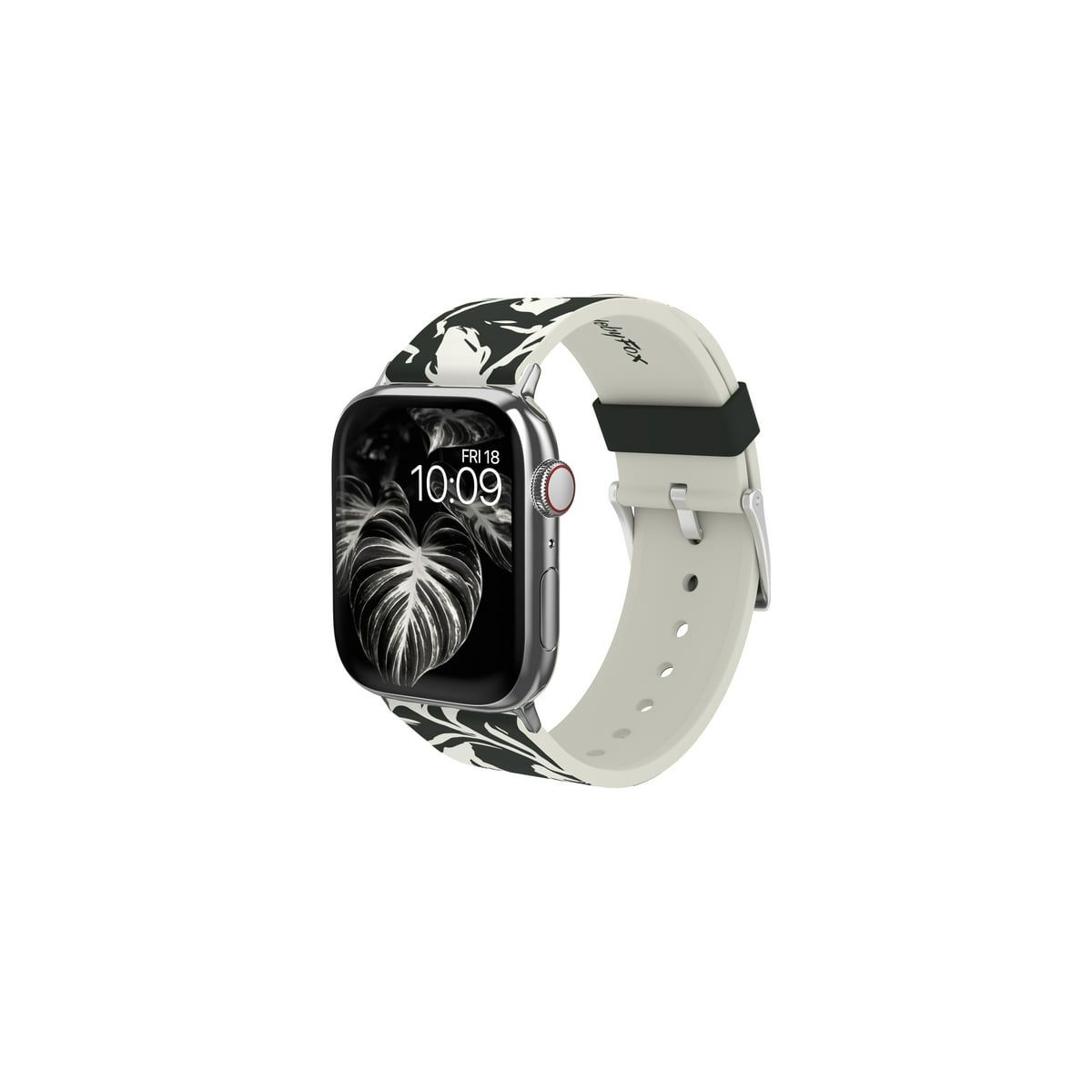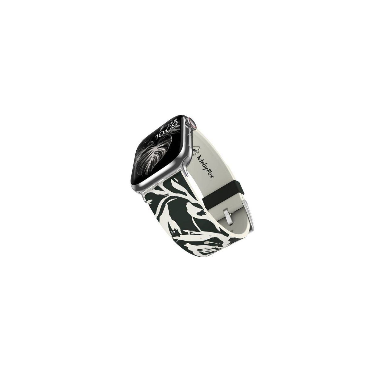 Our straps are compatible with all current Apple Watch models (Series 1, 2, 3, 4, 5, 6, 7, 8, 9, Ultra, Ultra 2, & SE) and come with 2 sets of connectors to accommodate 38/40/41 mm and 42/44/45 mm case sizes. They also work with Android-based smartwatches with a 22mm pin.With a simple, stainless steel pin-and-tuck buckle, each of our watch bands is designed for a comfortable, universal fit on most wrists our bands fit wrists ranging from 5.5"- 8.2" (13-22cm), which accommodates most wrist sizes.Each strap comes with access to digital content for your Apple Watch, taking your wearable experience to a whole new level. Simply download our MobyFox App, then from the MobyFox App scan the QR code included in the box. Youll find the QR code in our warranty leaflet.Our straps are made from high quality, sweat and UV-resistant silicone, so theyre designed for intensive use and intended to be worn all day. Just be sure to have secured the lugs and pins to your watch you should hear it click! .Our bands clean up well with soap and water if they get dirty (more instructions included in the box). To keep your MobyFox band looking as good as possible for as long as possible, we do suggest avoiding excessive exposure to hand sanitizer, which can affect the longevity of the printed design.Design: Features an abstract black and white floral pattern, offering a sleek and elegant look.Compatibility: Fits all Apple Watch versions and sizes.Material: Made from high-quality, sweat and UV-resistant silicone, ensuring durability for daily wear.Closure: Equipped with a stainless steel pin-and-tuck buckle for a secure fit.Wrist Fit: Accommodates wrists ranging from 5.5" to 8.2" (13-22cm), suitable for most users.