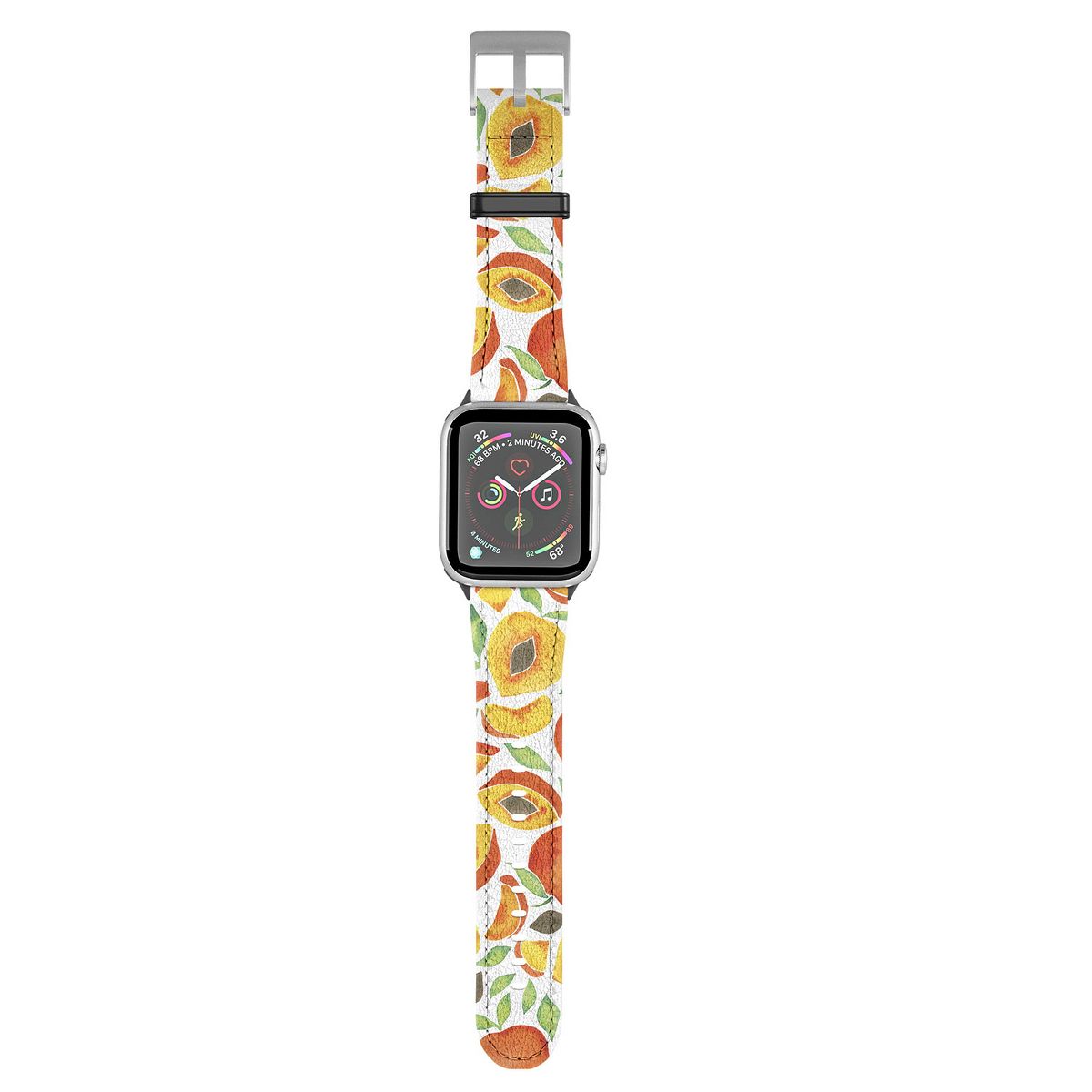 Cat Coquillette Peaches Green Leaves 42mm/44mm Silver Apple Watch Band - Society6