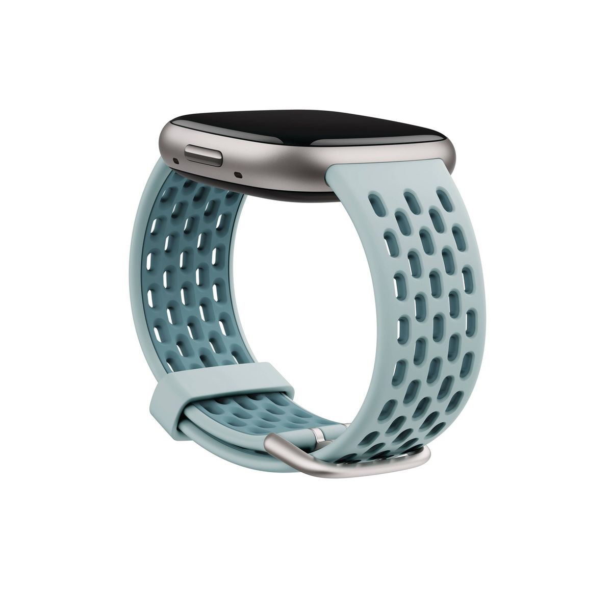 Soft, breathable and durable silicone sport bands make it easy to go from work to workouts and everywhere in between. These bands are water resistant for wear in rain and during sweat and swims. Official Fitbit accessory designed and tested for comfort and durability. Works with Fitbit Sense 2, Fitbit Sense, Fitbit Versa 4, and Fitbit Versa 3, watch not included.